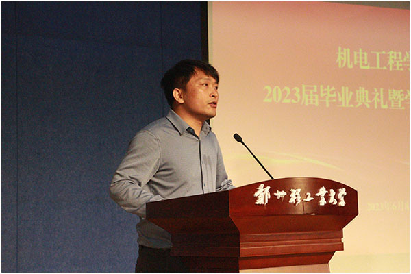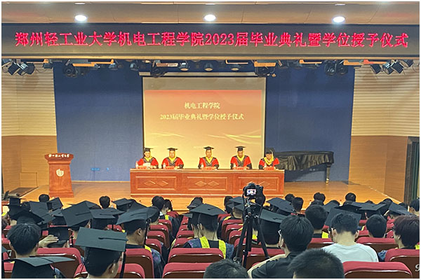 6月8日,机电工程学院在东风校区演讲厅隆重举行2023届毕业典礼暨学位授予仪式。学院班子成员、教师代表、辅导员和毕业生代表参加典礼。毕业典礼由副书记孙琳主持。