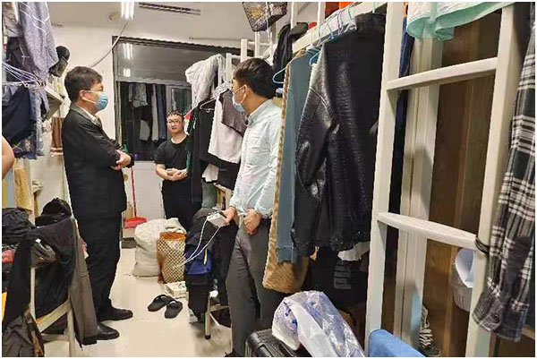 走访中,学院领导老师仔细询问毕业生毕业设计、就业考研情况,了解学生真实想法和诉求,深入与有困难学生交流,帮助他们答疑解惑,鼓励未就业学生树立理性的择业观和就业观,要根据自身实际调整心态和期望值,继续积极主动参加各类招聘会,尽早就业。领导老师认真聆听毕业生对文明离校相关服务工作的意见和建议,帮助考取本校研究生的同学协调解决行李安置问题。领导老师叮嘱同学们要加强宿舍防火、防盗,提高安全防范意识,学生干部要站好最后一班岗,做好查寝工作,督促学生按时归寝。