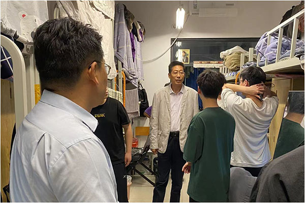 为切实加强毕业生文明离校工作,营造平安、和谐的校园环境,机电工程学院坚持在毕业季值班值守。夜间值班时,学院领导带领辅导员、班主任深入宿舍走访慰问2023届毕业生。