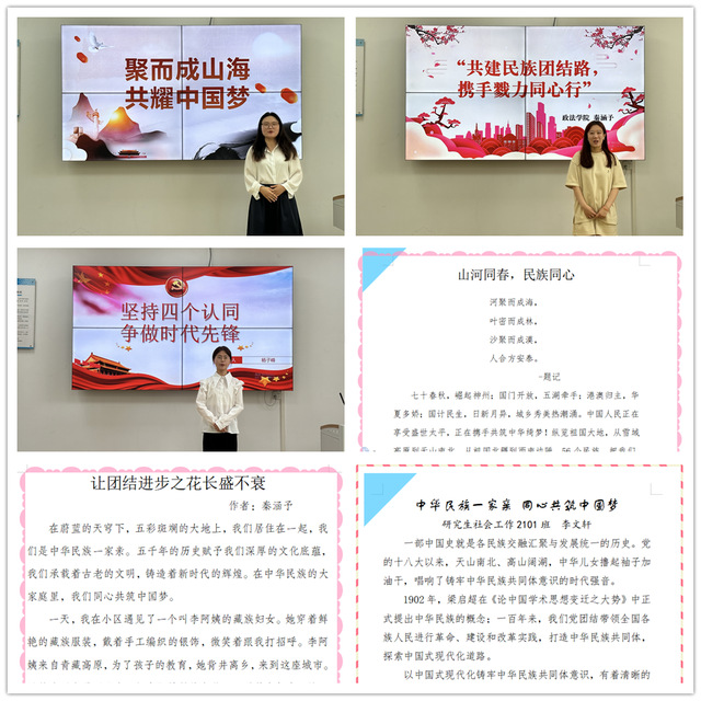 为全面贯彻习近平总书记关于加强和改进民族工作的重要思想,帮助学生牢固树立中华民族共同体意识,5月15日-6月16日,政法学院开展了以“中华民族一家亲同心共筑中国梦”为主题的铸牢中华民族共同体意识主题教育。
