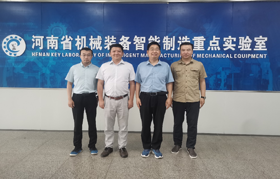 李浩陪同王禹林参观了河南省机械装备智能制造重点实验室,与数字化设计与制造、故障诊断与性能预测、工业机器人等实验室的骨干教师进行了交流。李浩介绍了课题组在高端装备优化设计、人机安全与管控、中央空调节能调控、工业数字孪生等方面的研究进展;王禹林介绍了课题组在智能机器人、车间智能制造等方向的代表性成果和未来计划,双方就下一步研究合作达成了共识。