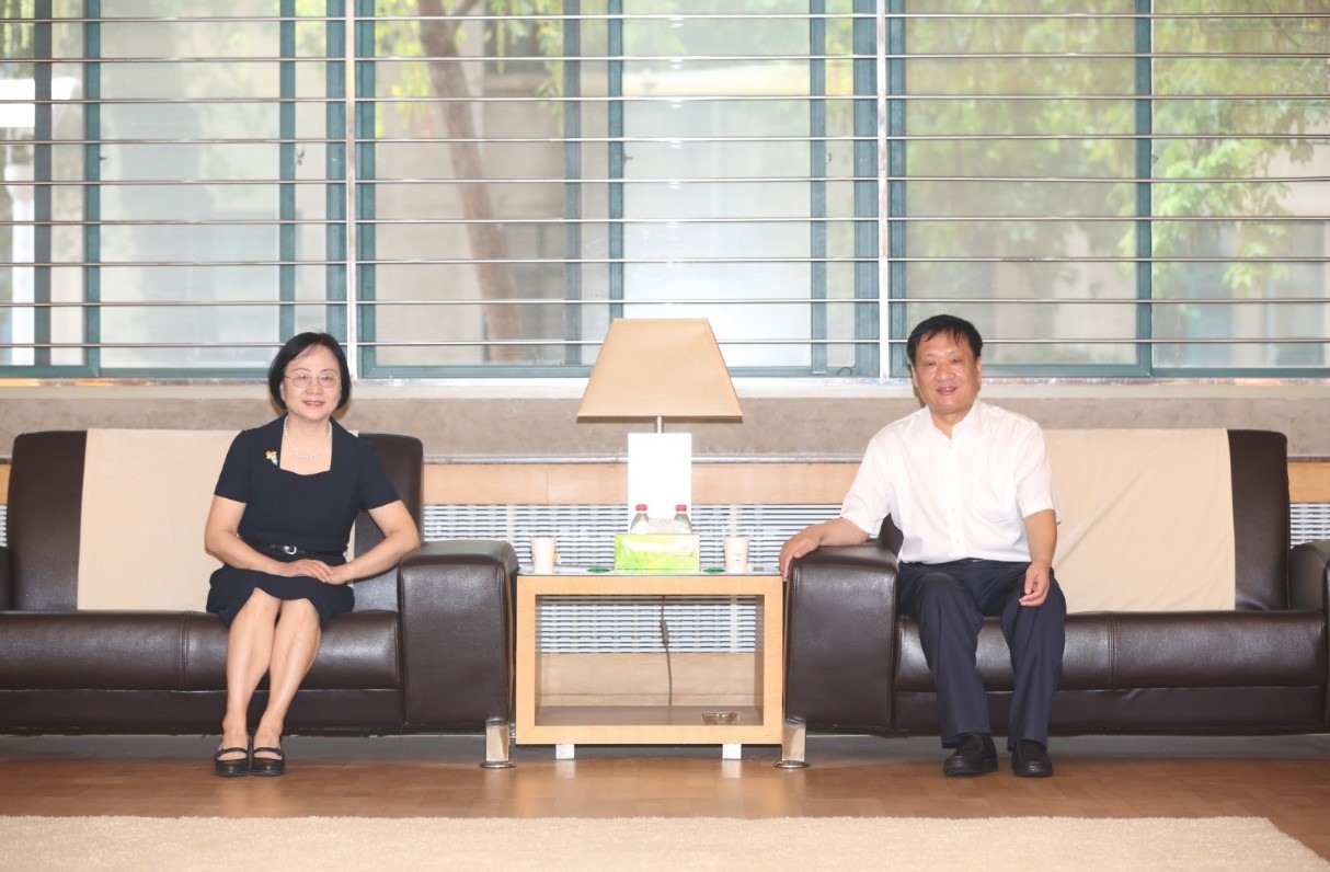 黄荣杰对王欣的到来表示热烈欢迎并从历史沿革、教学科研、办学条件、社会服务等方面简要介绍了学校的基本情况,感谢中国轻工机械协会对学校发展的支持与帮助。他指出,18新利直播 致力于高水平轻工特色学科建设,希望在人才培养、科学研究和平台共建等方面加强合作。王欣对18新利直播 承办中国轻工机械协会六届九次常务理事扩大会暨校企对接交流会表示感谢。她指出,学校在机械工程、食品科学与工程等学科特色优势显著,协会加大支持力度,构建高质量的校企合作机制。