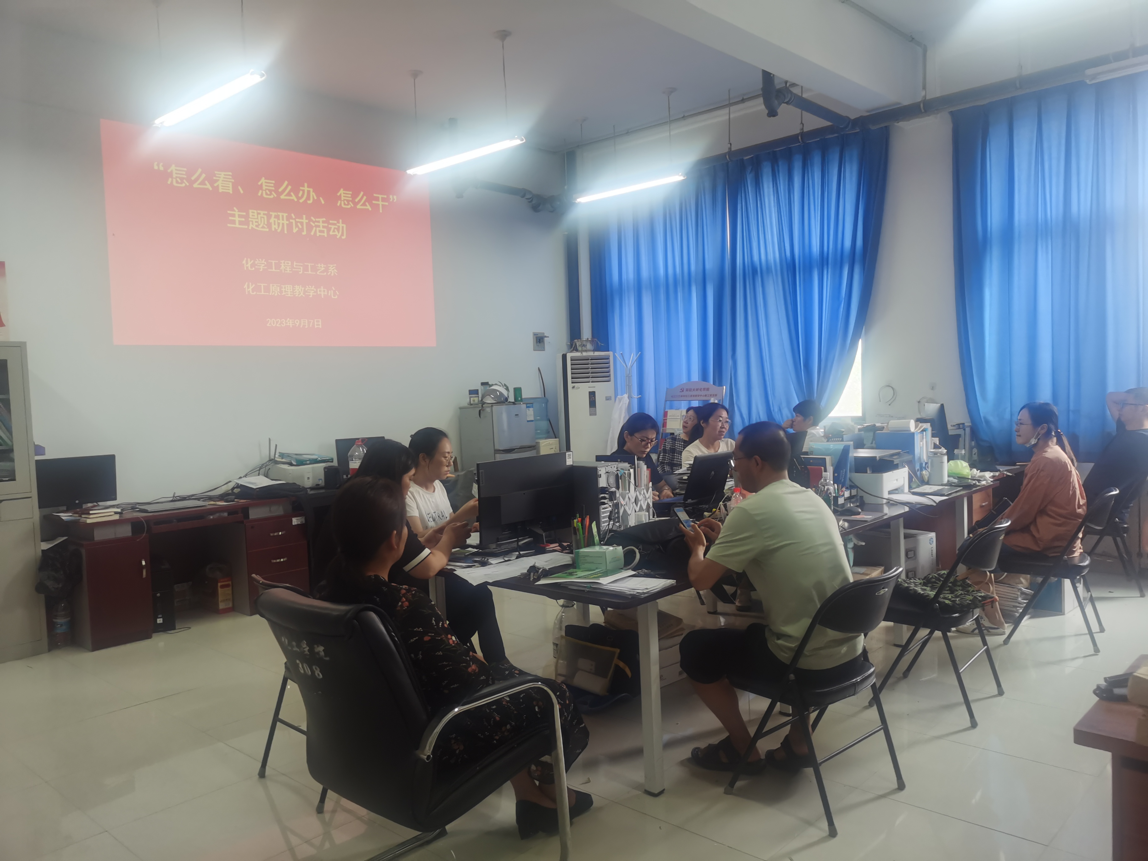为进一步巩固学习贯彻习近平新时代中国特色社会主义思想主题教育成果,汇聚推动事业高质量发展的思想共识和强大动力,九月上旬以来,材料与化学工程学院分阶段、分层面开展“怎么看、怎么办、怎么干”主题研讨会。