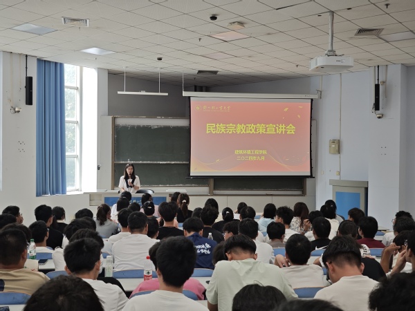 为深入学习贯彻习近平总书记关于加强和改进民族工作的重要思想和关于宗教工作的重要论述,9月5日,建筑环境工程学院在东风校区教三楼203室举行民族宗教政策宣讲会。宣讲会由建筑环境工程学院团委书记寇誉元主讲,学院2024级全体新生参加活动。
