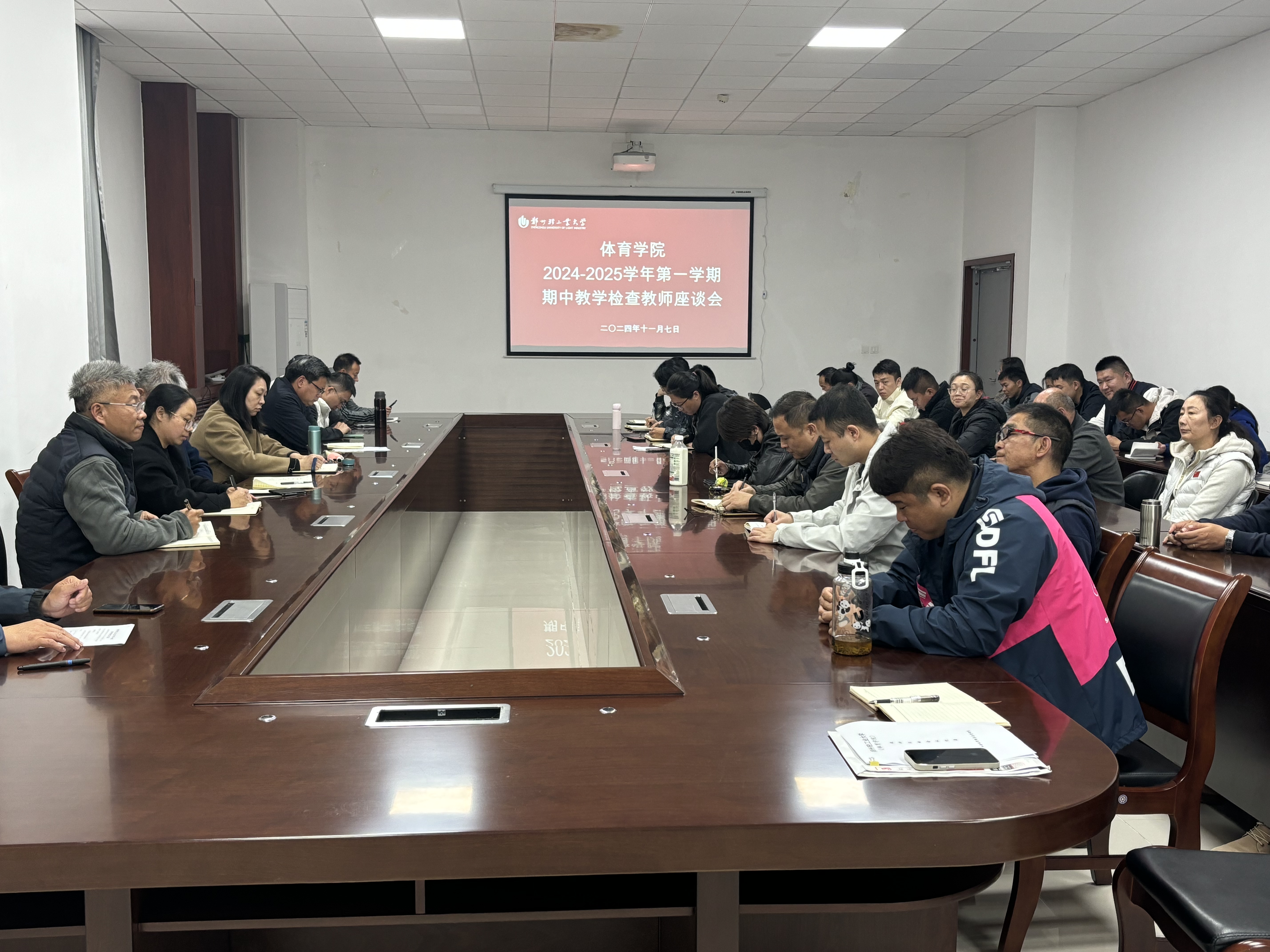 11月7日下午,体育学院在科学校区体育馆会议室组织召开2024-2025学年第一学期期中教学检查教师座谈会。学院领导班子和全体教师参加了此次座谈会,会议由副院长刘洋主持。