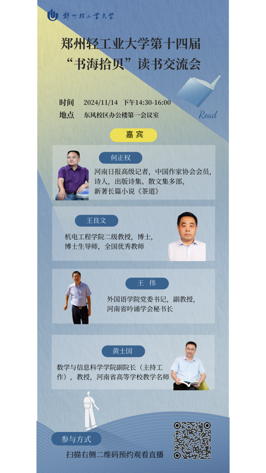 11月14日周四下午14:30,欢迎大家扫描下方二维码预约观看直播。亲爱的读者们,让我们携手启航,共同拾起那一颗颗熠熠生辉的“知识贝壳”吧!
