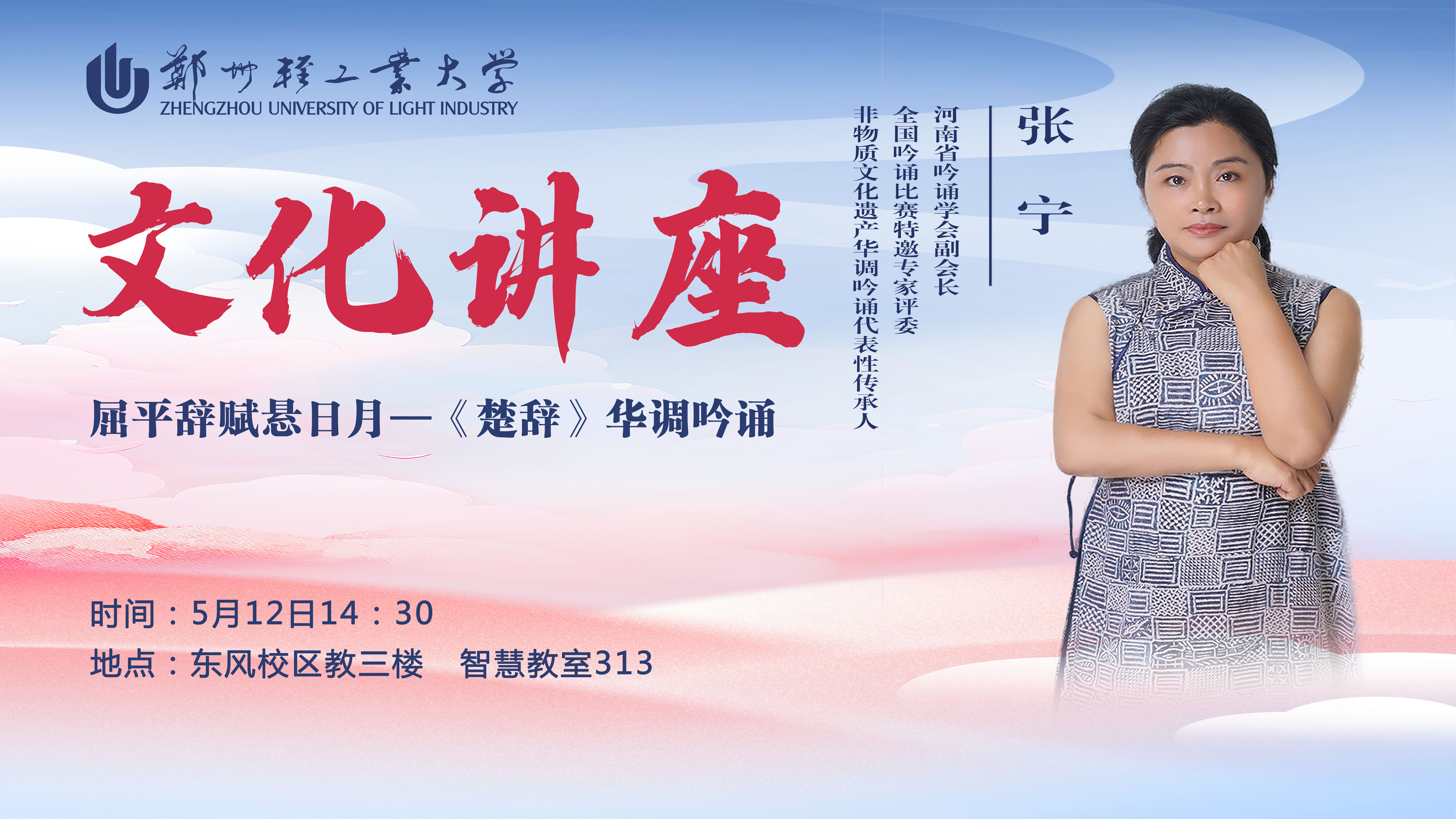 邀请嘉宾:张宁,河南省吟诵学会副会长、全国吟诵比赛特邀专家评委、华氏吟诵调传承人。出版有《基础吟诵七十五首》《中级吟诵》《高级吟诵》《词的创作和吟诵》《古诗词诵读》等。