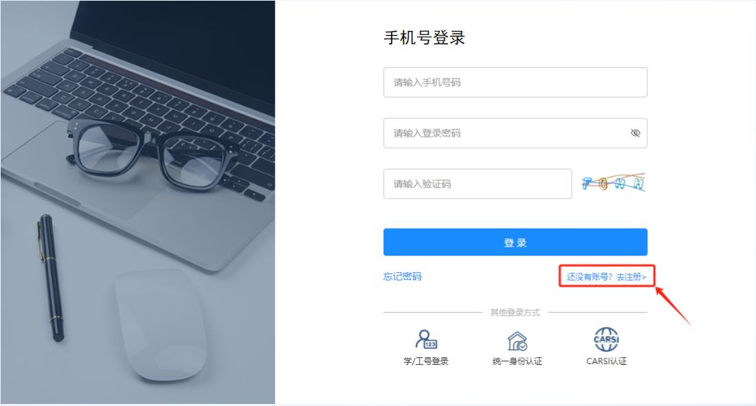 在智信数图统一身份认证页面,点击【还没有账号?去注册>】,阅读弹窗提示,点击【我知道了】进行下一步操作。