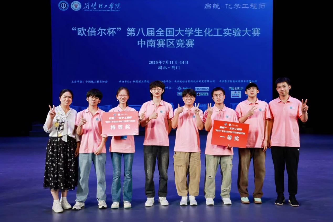此前,中南赛区竞赛于7月11日至14日在荆楚理工学院举行,共有来自粤、闽、豫、鄂、湘、琼六省的158支队伍参赛。在我校材料与化学工程学院化工原理教学中心团队老师的指导下,我校应用化学专业岳文平、钟泽润,生物工程专业刘雯雯组成的“天天向上”代表队以赛区特等奖身份晋级,并成为代表中南赛区出征全国总决赛的19支队伍之一,荣获全国总决赛一等奖;应用化学专业学生张忠宇、张培昂和杨涛组成的“三传突击队”代表队获得中南赛区一等奖。