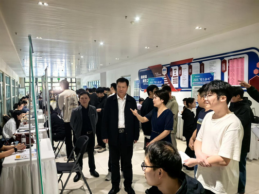 杨新宇深入招聘会现场,对天台县人力资源和社会保障局局长施卫玲一行来校选聘毕业生表示热烈欢迎,认真听取了关于台州市及天台县城市概况、产业布局和人才政策介绍。杨新宇指出,希望以此次活动为契机,进一步巩固和加强政府、学校与企业之间的三方战略合作,深化产学研协同创新。杨新宇现场鼓励毕业生把握机遇、积极就业,勇投市场浪潮。