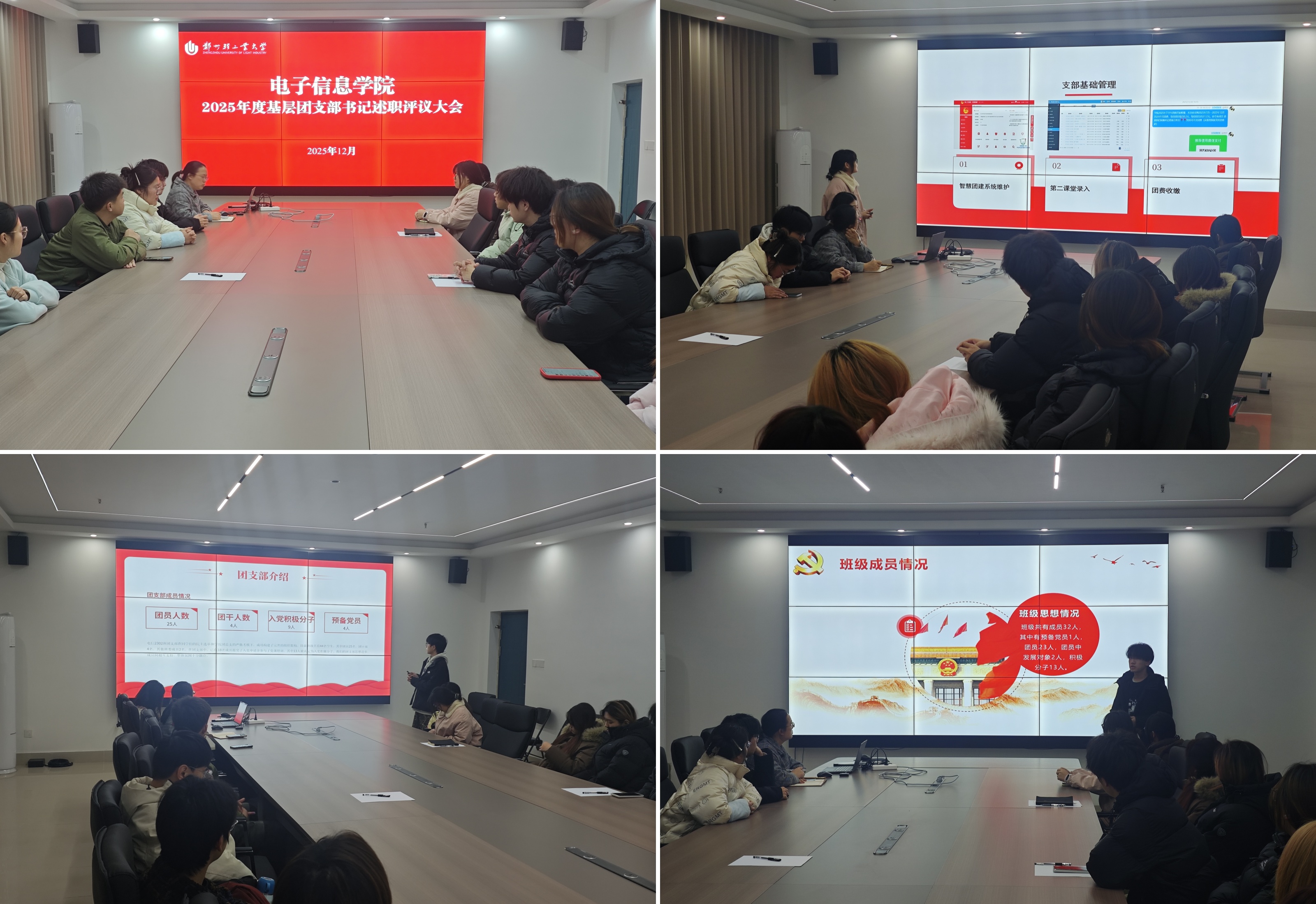 为深入贯彻落实从严治团要求,夯实基层团组织基础,充分激发团支部活力,12月29日下午,电子信息学院在四教楼305会议室召开2025年度基层团支部书记述职评议大会。学院团委书记周芳华、专职辅导员及各班级团支部书记共同参会。