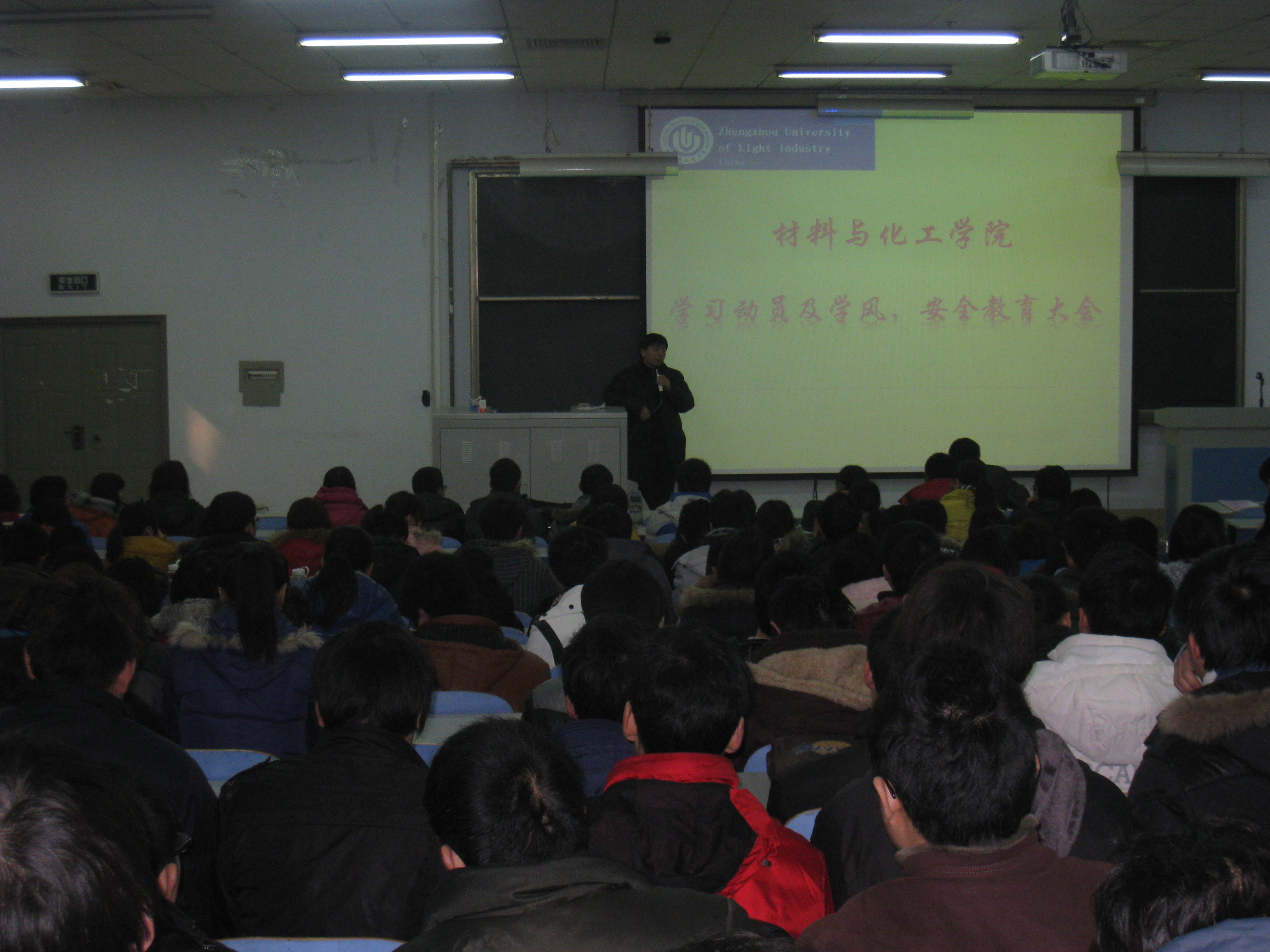 2012年2月16日中午,材料与化学工程学院在东风校区教三楼302召开了新学期学风及安全教育大会,尹志刚副院长、周立明副书记、年级辅导员以及2009级全体学生参加了大会。
