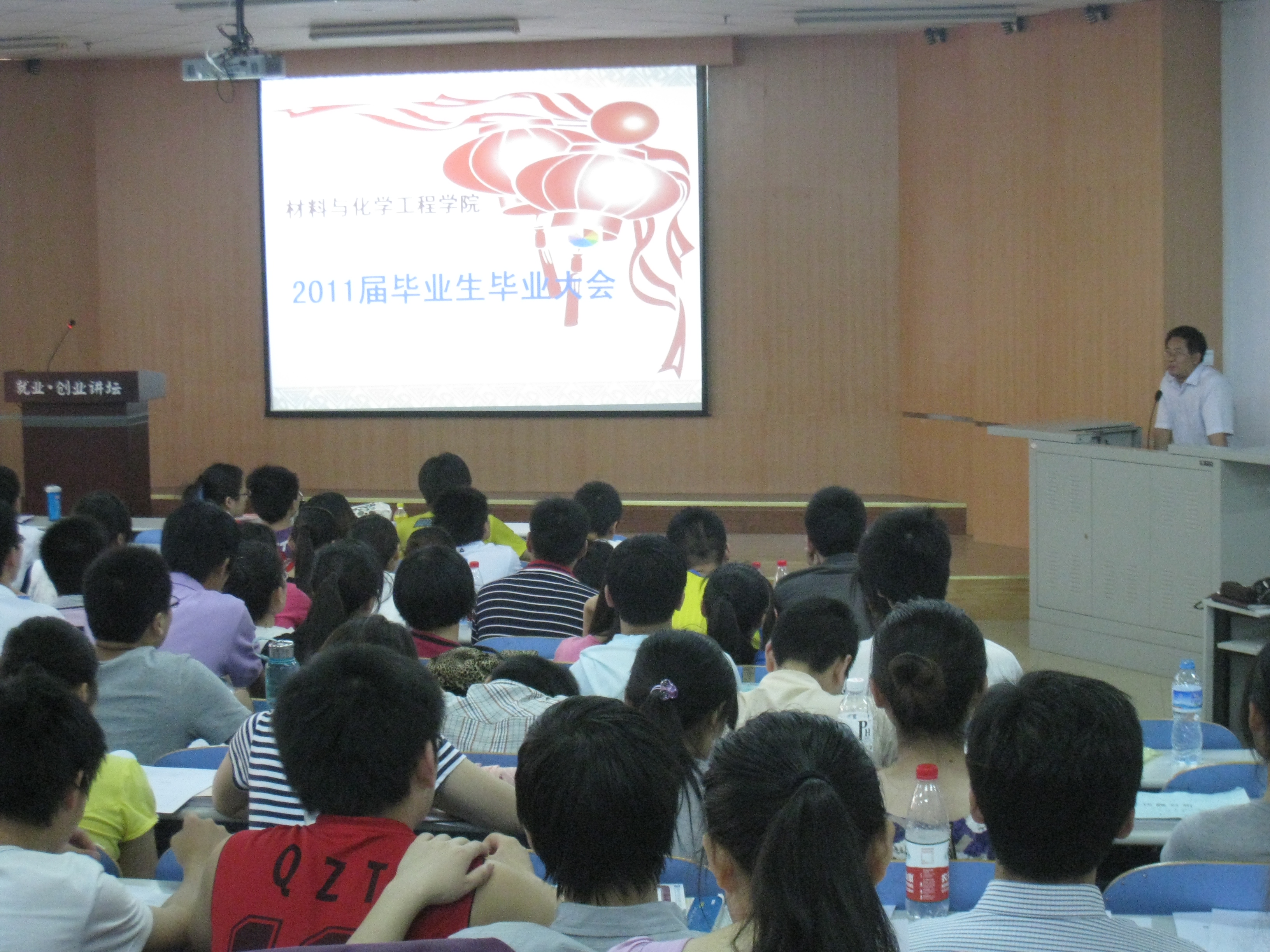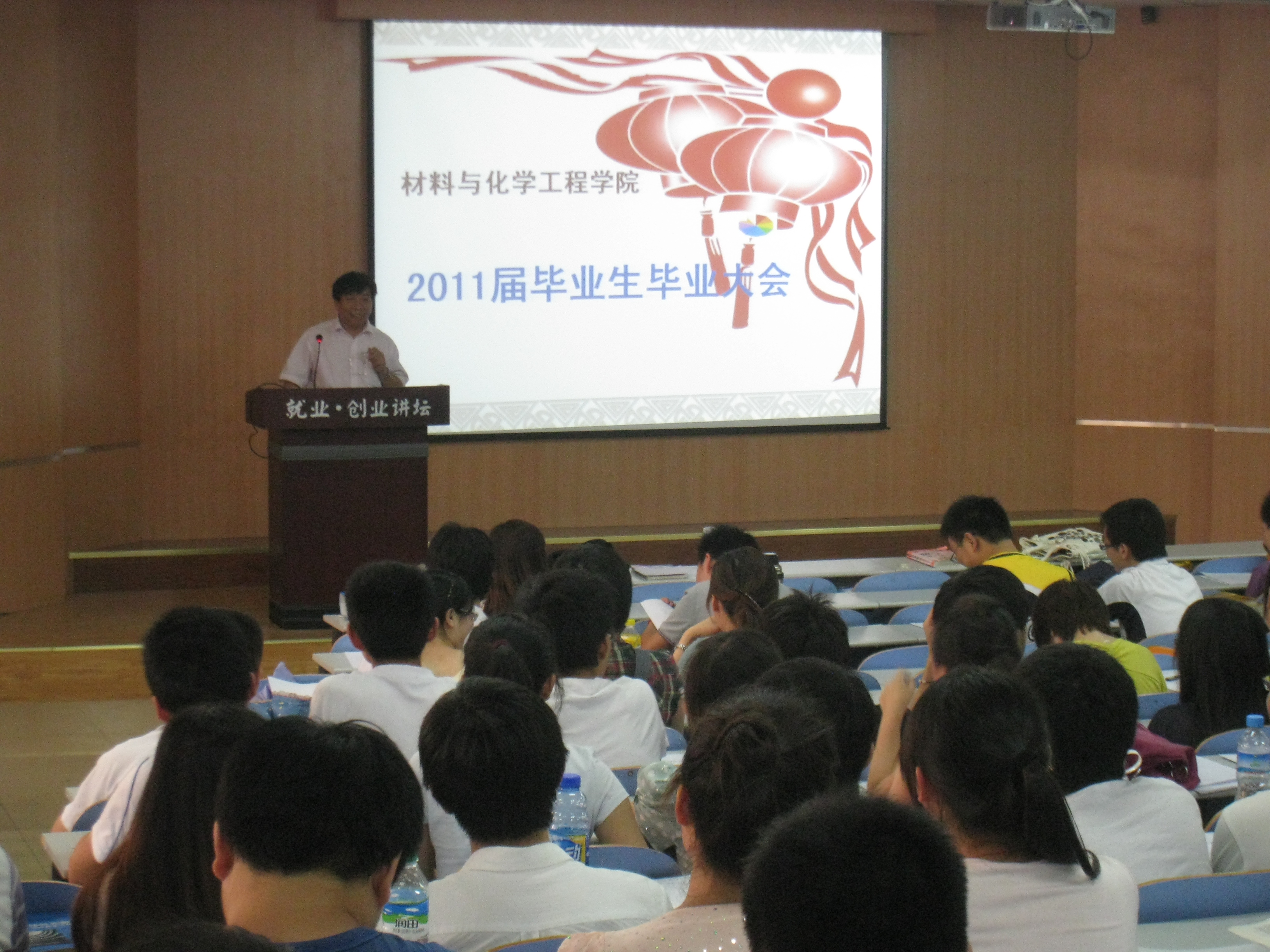 ,材料与化学工程学院在教三楼103教室召开全体毕业生大会。尹志刚副院长、周立明副书记、相关辅导员以及全体毕业生参加了大会。