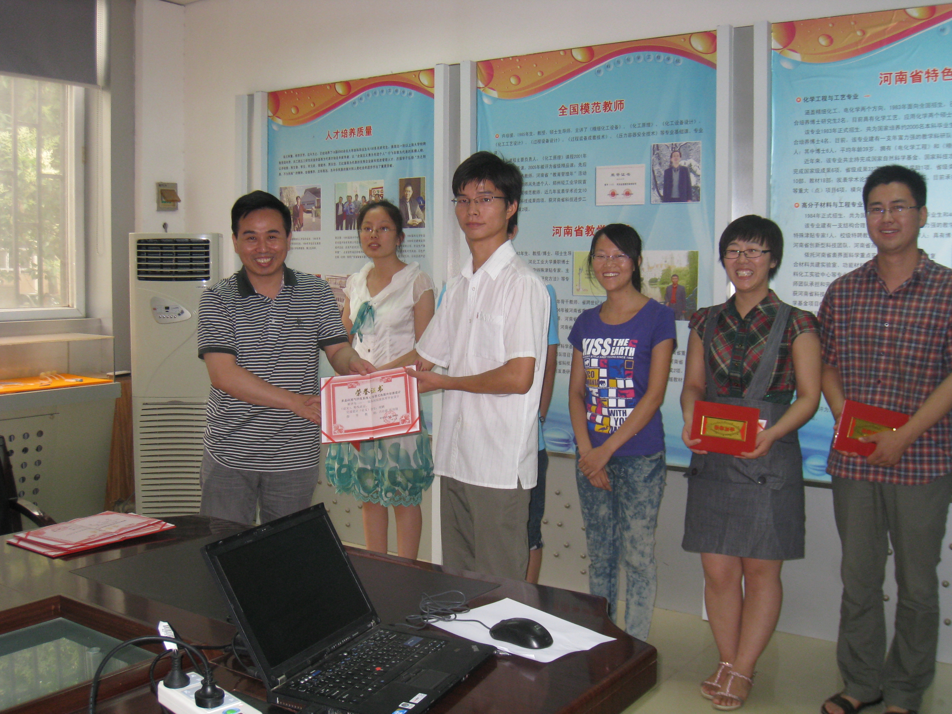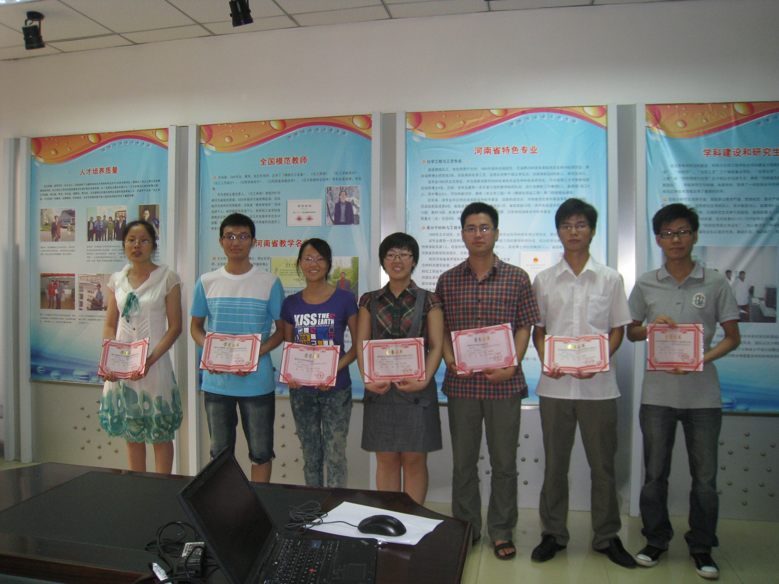 最后,答辩委员会主席方少明教授为获得材化学院优秀毕业设计(论文)的学生颁发了荣誉证书,并合影留念。