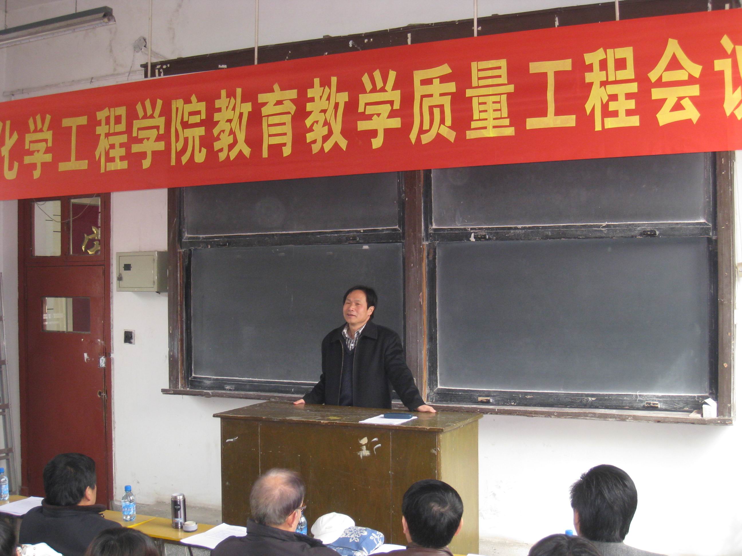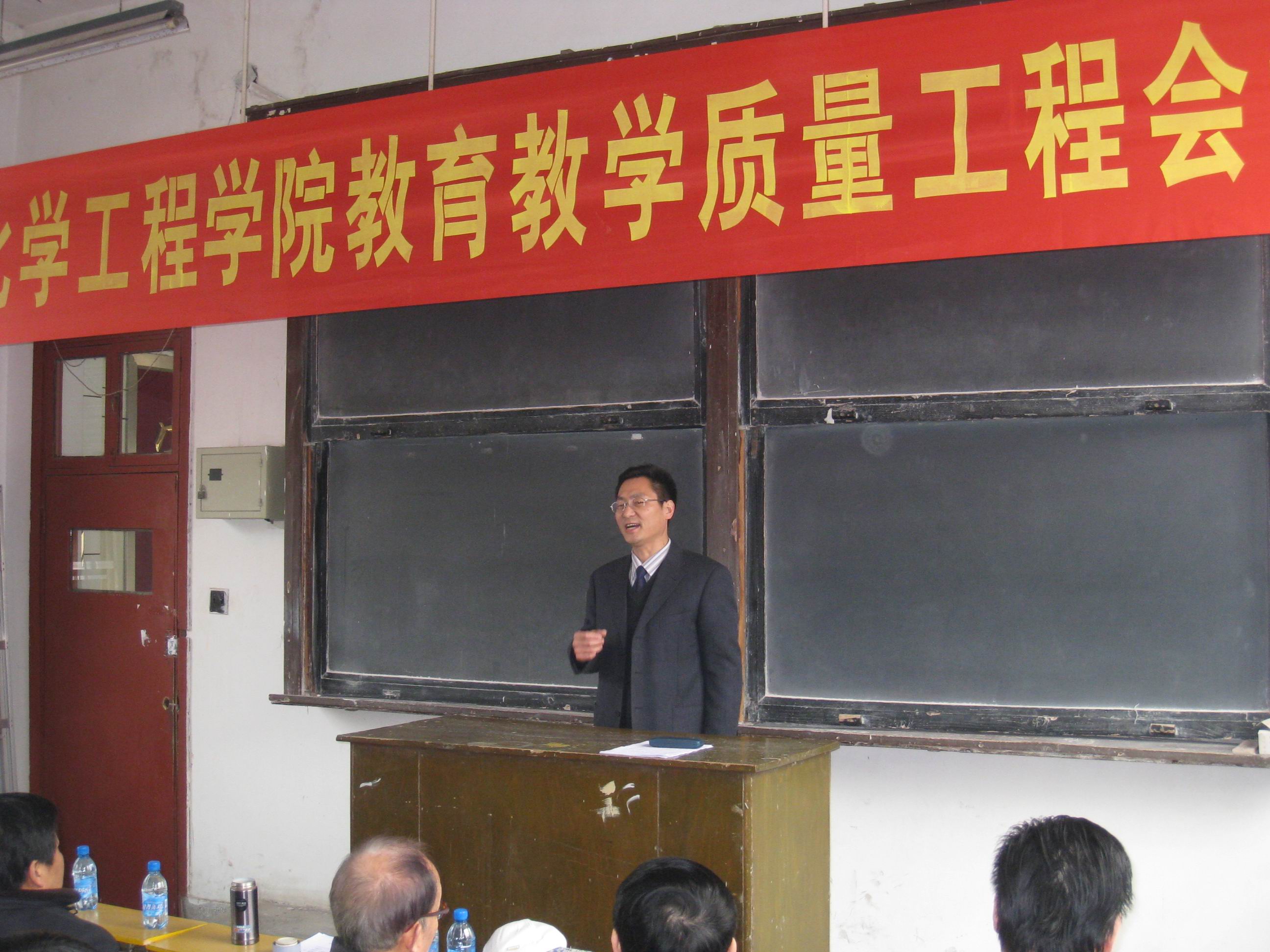 会议由材料与化学工程学院党总支书记吴刚主持,首先陈江风副校长肯定了材料与化学工程学院在教育教学质量工程建设方面取得的成绩,阐述本次会议的重要意义,希望通过此次会议,鼓励更多教师参与质量工程建设,为提高材料与化学工程学院整体教学水平奠定坚实基础;教务处张东初处长在充分肯定材料与化学工程学院成绩基础上,希望材料与化学工程学院进一步加强与教务处及兄弟院系的协作,务求实效,争取使教育教学质量工程建设再上新台阶。