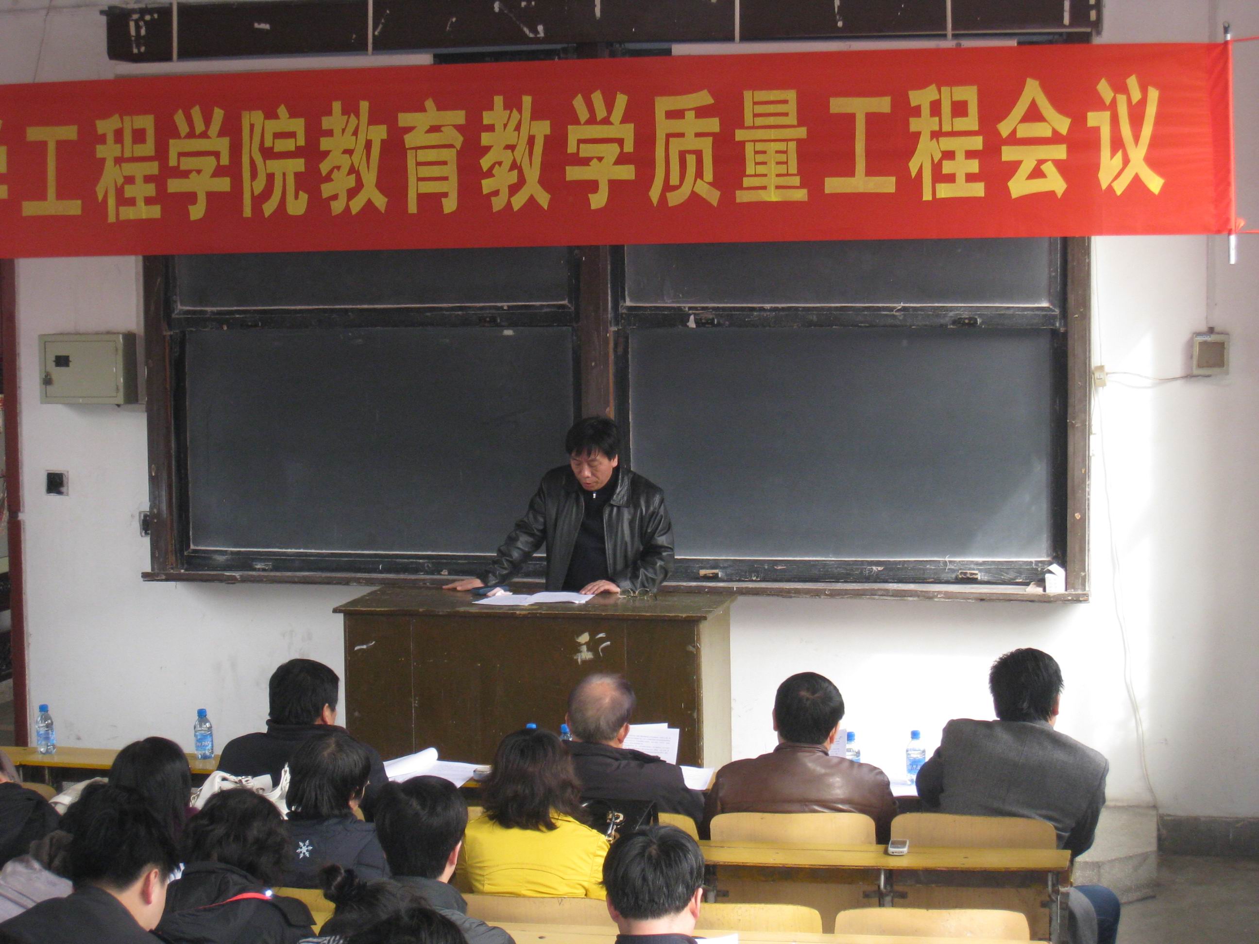 2010年3月11日下午,在材料与化学工程学院阶梯教室召开了“材料与化学工程学院第一届教育教学质量工程会议”,学院全体教师参加了会议,郑州轻工业学院副校长陈江风教授、教务处张东初处长、袁道强副处长以及学校督导室主任郭顺勤教授应邀出席了会议。