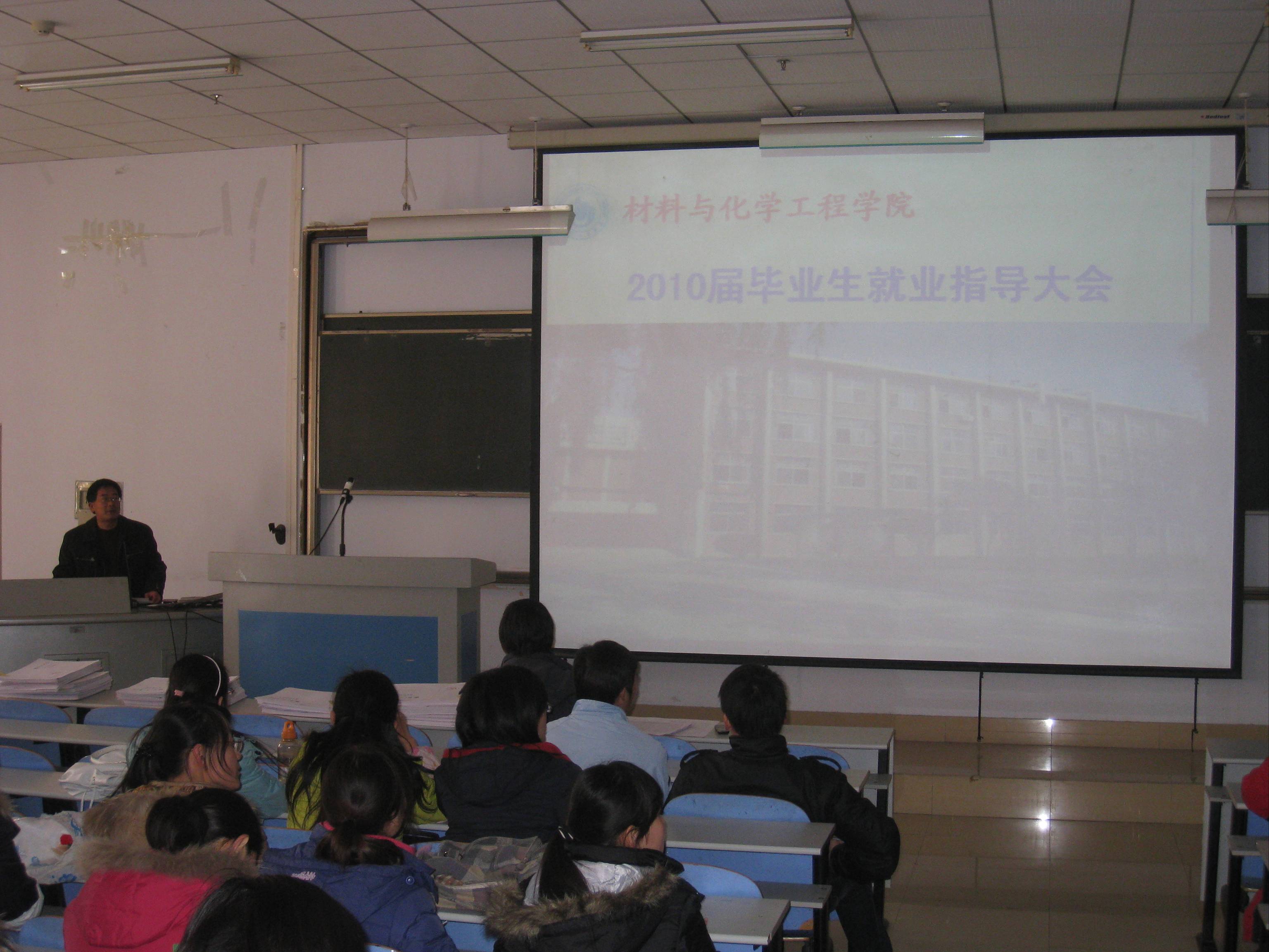 2009年11月17日中午,材料与化学工程学院在教三楼302教室召开了2010届毕业生全体大会,党总支副书记周立明、毕业班辅导员万慧杰老师及全体2010届毕业生参加了会议。