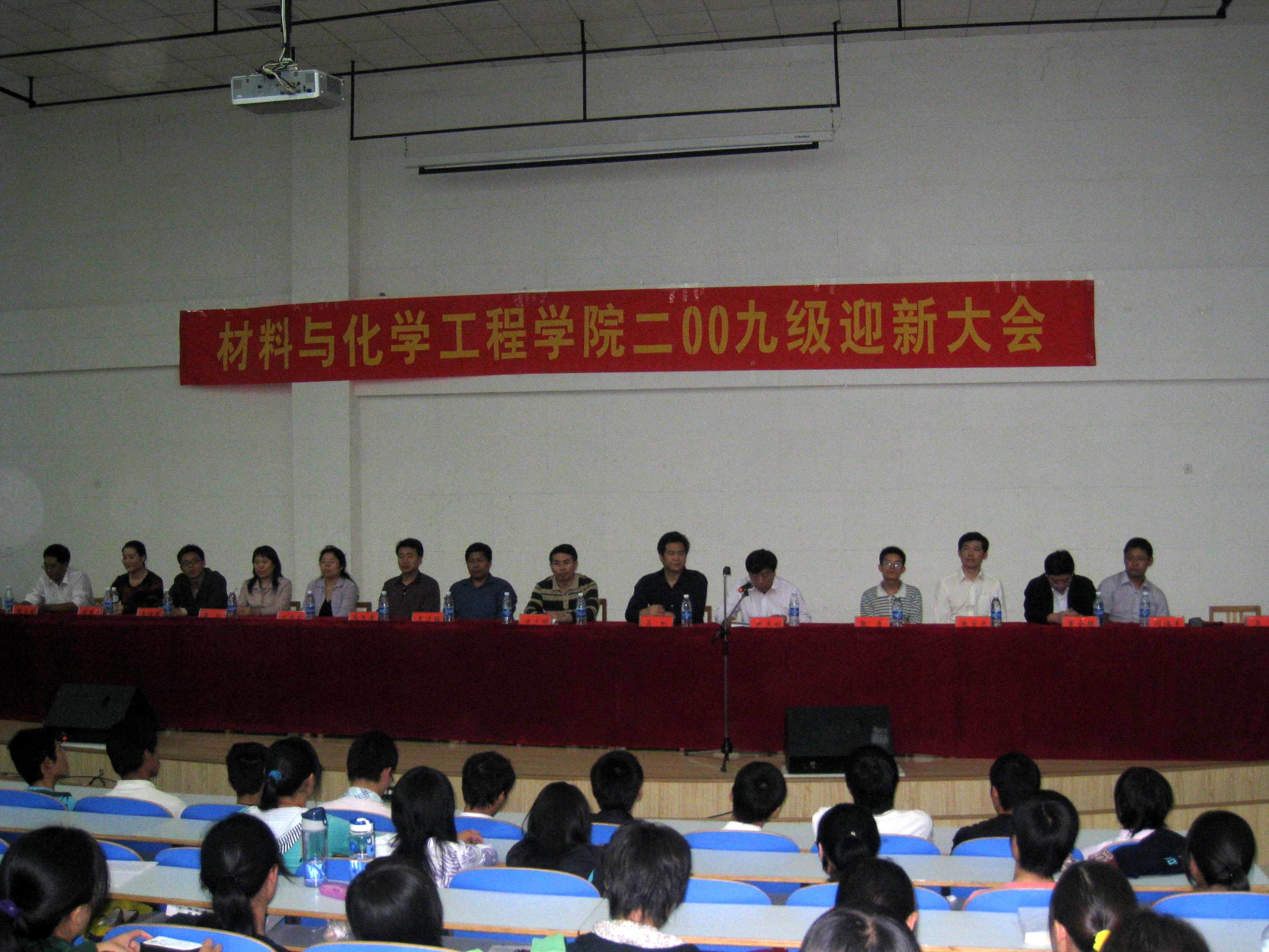 2009年9月26日,材料与化学工程学院2009级迎新大会在科学校区电教楼208教室隆重举行。学院领导班子成员、各系部主任、教师代表、09级新生辅导员及全体新生出席了大会。会议由党总支副书记周立明副教授主持。