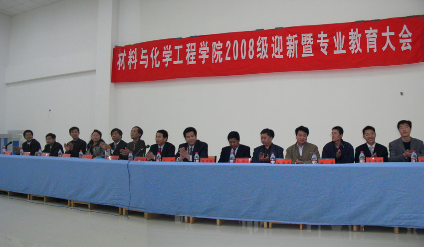 下午,材料与化学工程学院2008级迎新暨专业教育大会在科学校区208教室隆重举行。学院领导班子成员、2008级专业导师、各系部主任及专业教师等50余人出席了大会,本次大会分迎新和专业教育两个阶段。会议由党总支副书记周立明副教授主持。
