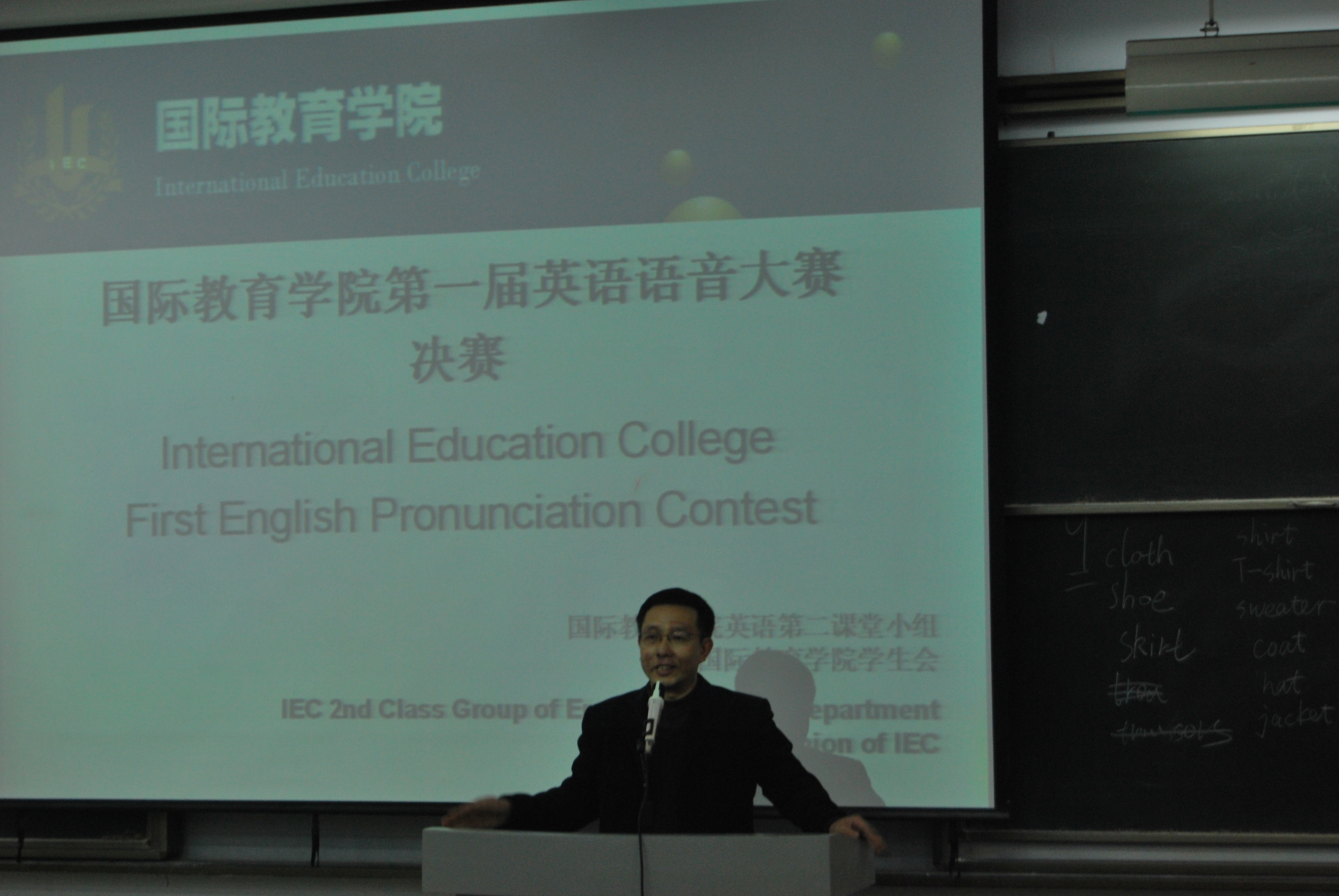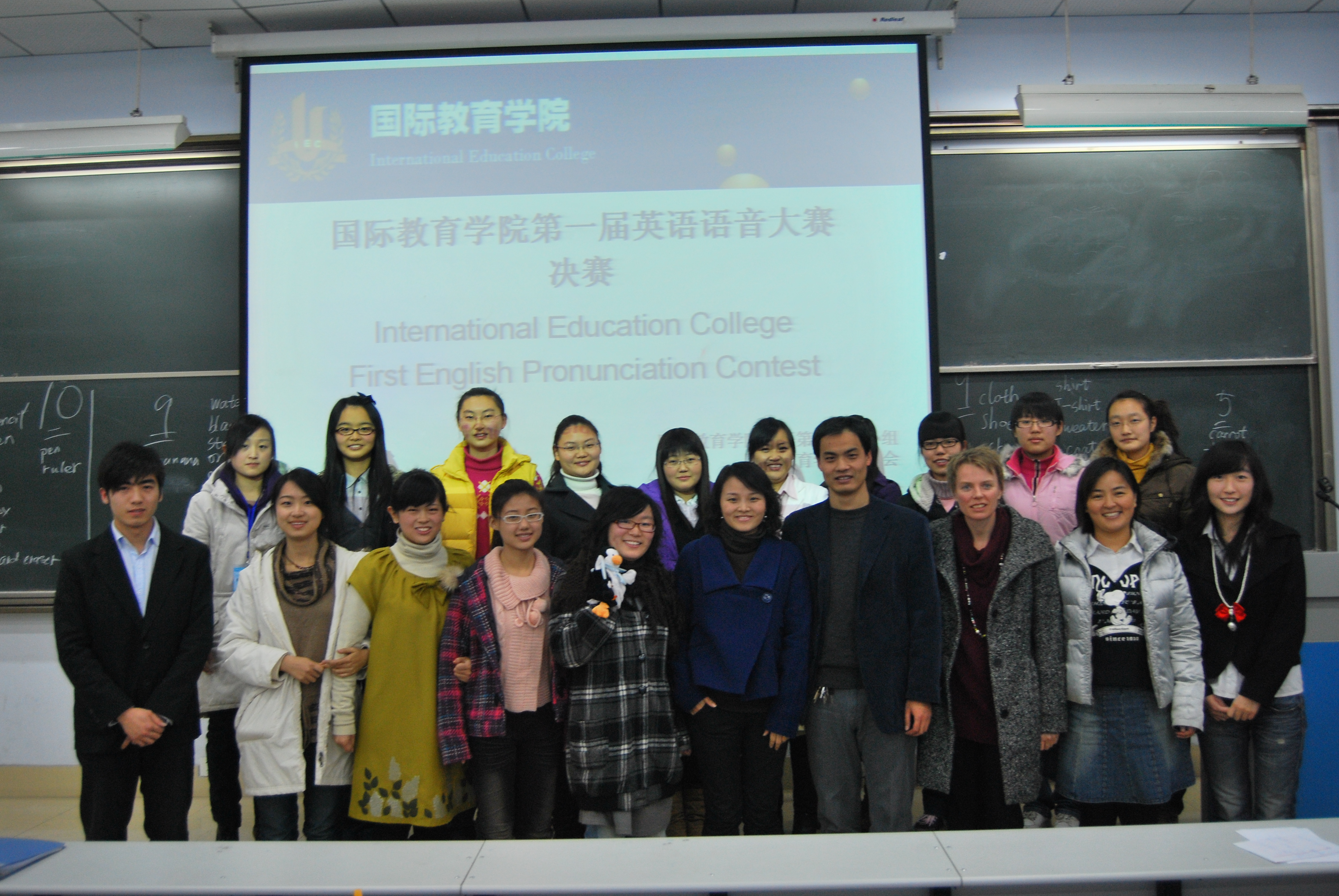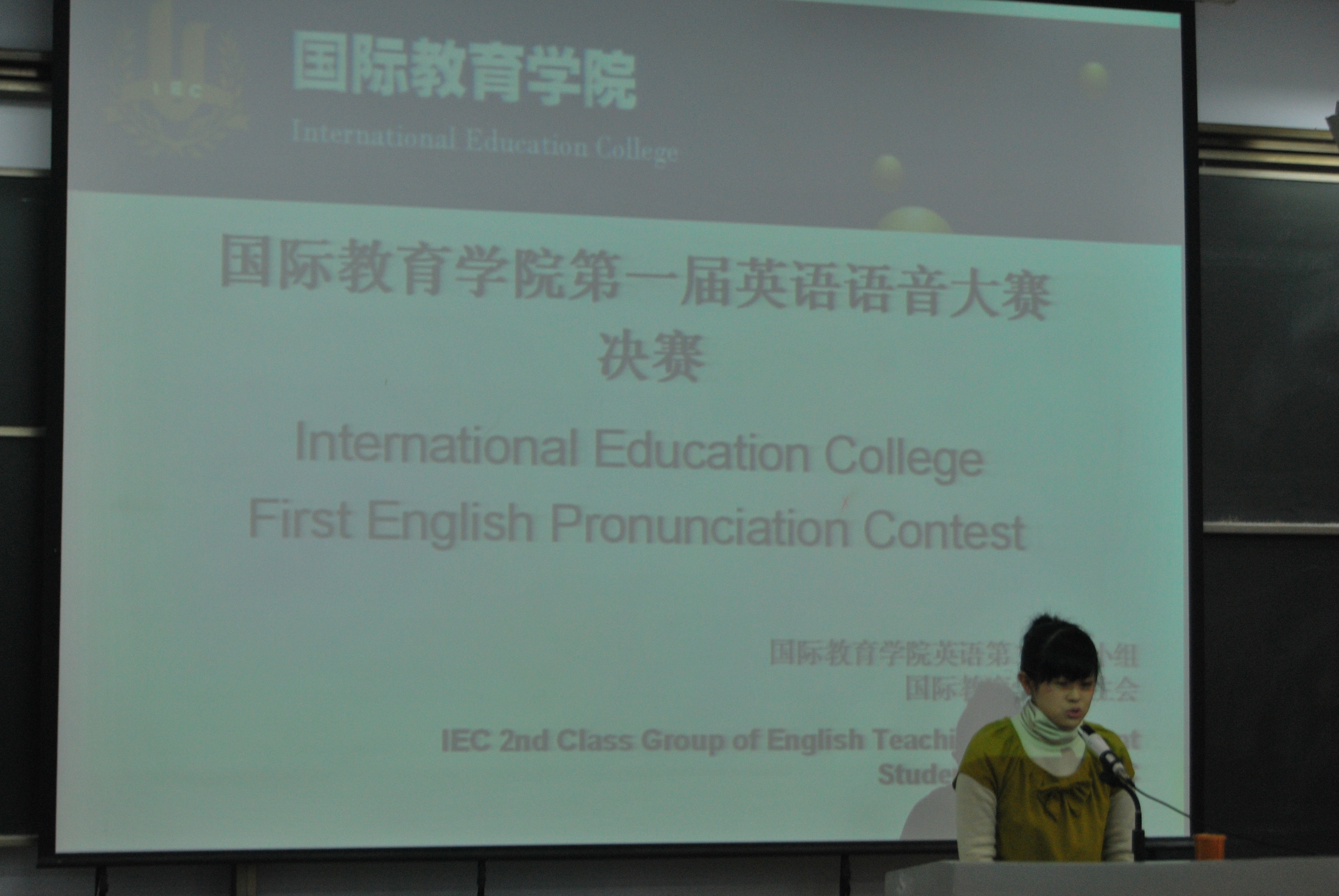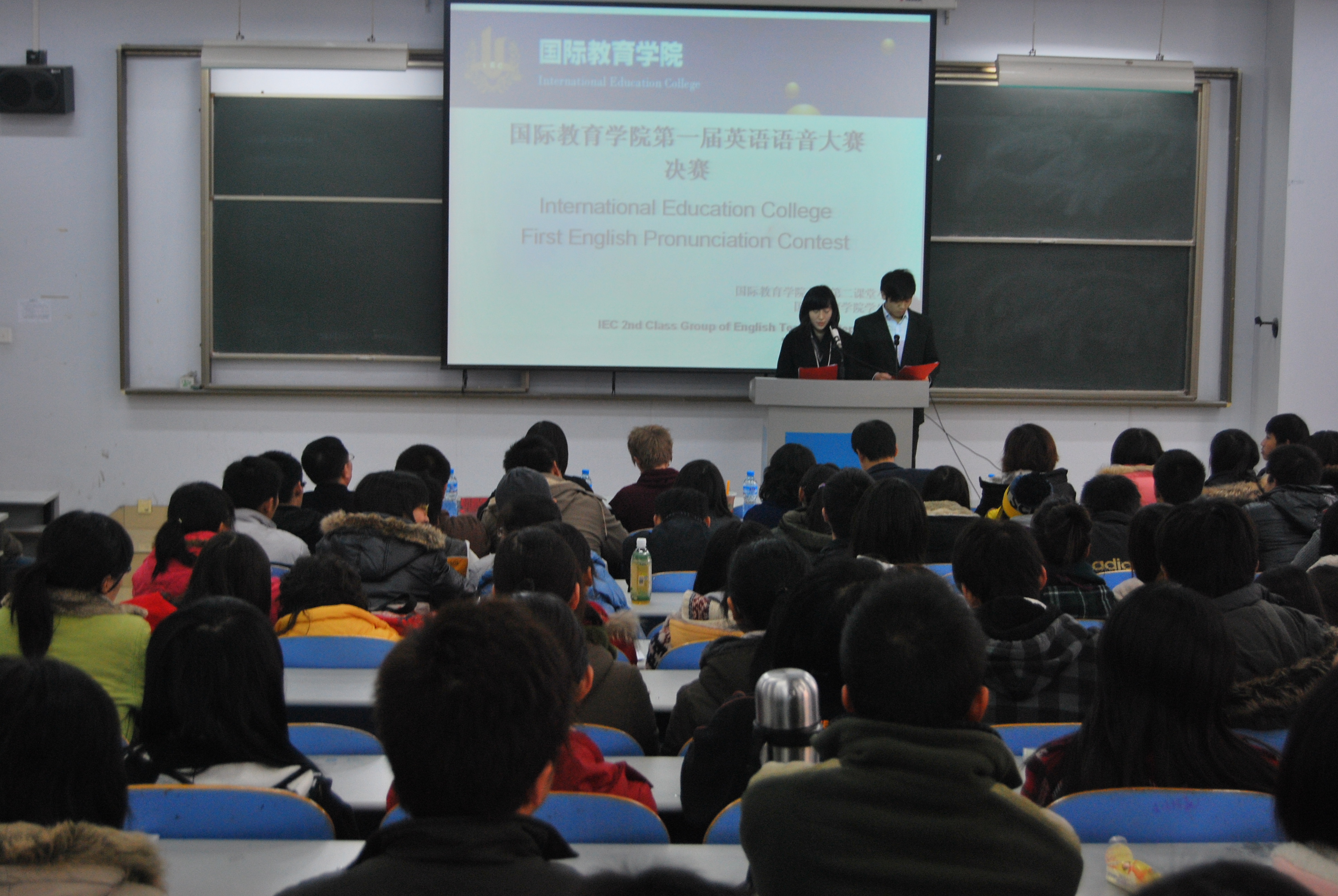 2009年11月26日,由国际教育学院英语第二课堂教学小组主办、国际教育学院学生会承办“国际教育学院第一届英语语音大赛决赛”圆满落下帷幕。当日,在我校教三楼205多媒体教室举行了精彩的比赛及隆重的颁奖仪式。经过角逐,来自2009级国际商务专业10班的曹竹筠与周晶荣获一等奖。来自2009级国际商务9班的杨璨,7班的徐子淇、卢亚新,传媒艺术设计2班的胡倩倩获得二等奖。另有十五名选手分别获得三等奖和优秀奖。