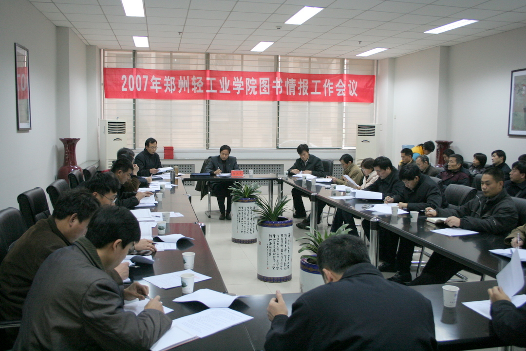 2007年12月24日下午“2007年郑州轻工业学院图书情报工作会议”在图书馆第三会议室举行。副校长、图书情报工作委员会主任陈江风教授出席会议,新一届郑州轻工业学院图书情报工作委员会全体委员和图书馆首届图书情报顾问参加了会议。会议由图书馆馆长、图书情报工作委员会副主任王培义教授主持。