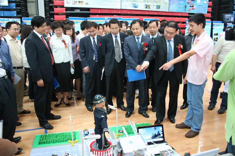 河南省副省长徐济超兴致勃勃观看我校参赛作品“智能电子交通警察”