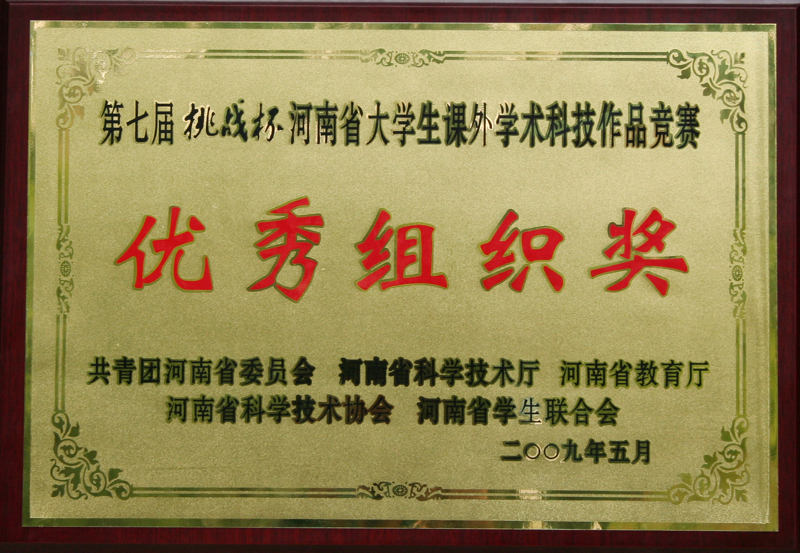 本届竞赛于2008年10月启动,吸引了全省7万余名大学生参与备战,有60多所高校参赛,申报参赛作品1173件,其中586件作品进入终审竞赛,240件作品参加了终审作品展示。我校共有16件作品进入终审决赛,11件作品参加了终审作品展示,获一等奖1项,二等奖2项,三等奖5项,优秀奖8项。我校获“优秀组织奖”荣誉称号。我校一等奖作品将代表河南省参加11月在北京航空航天大学举办的第十一届“挑战杯”全国大学生课外学术科技作品竞赛。河南电视台、河南教育网等媒体关注并报道了我校参赛情况。