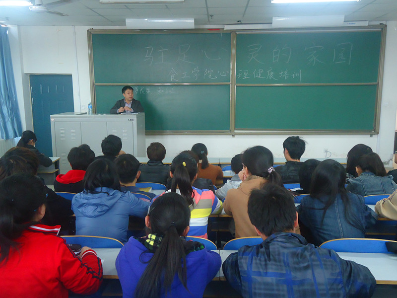 俗语讲“菜花黄、痴子忙”,春季是心理问题的高发季节,为了加强学生心理健康教育,提高我院学生心理健康工作人员的工作能力,及时了解学生的心理动向, 2012年4月1日中午,我院尚金清老师在科学校区对班级学生骨干、心理健康委员等做了题为“驻足心灵的家园”的心理健康培训。