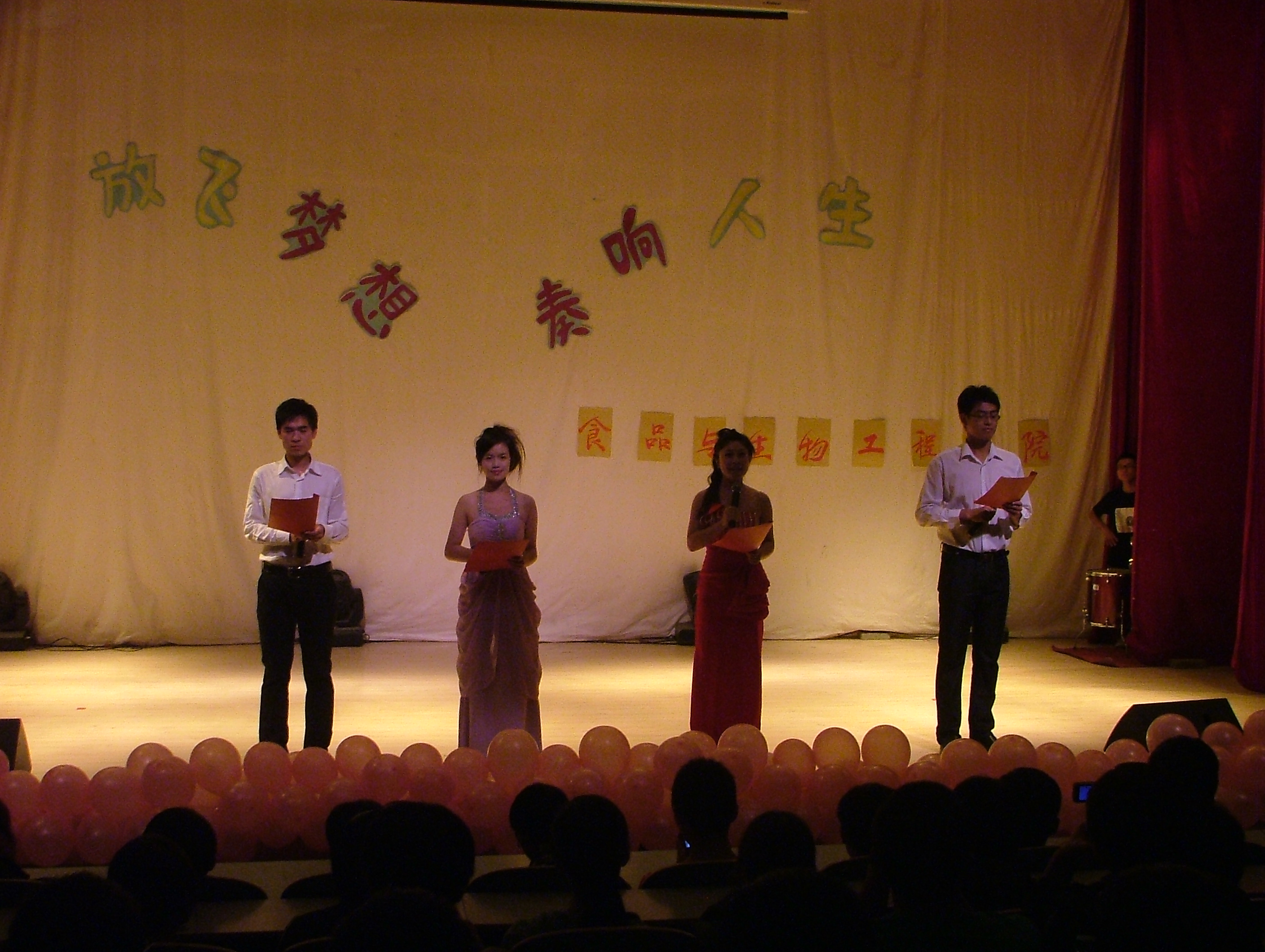 10月16日晚,食品与生物工程学院“放飞梦想,奏响人生”迎接2011级新生文艺晚会在科学校区电教楼208隆重举行。学院党总支吴占超副书记、新校区辅导员及2011级新生共同观看了文艺晚会。