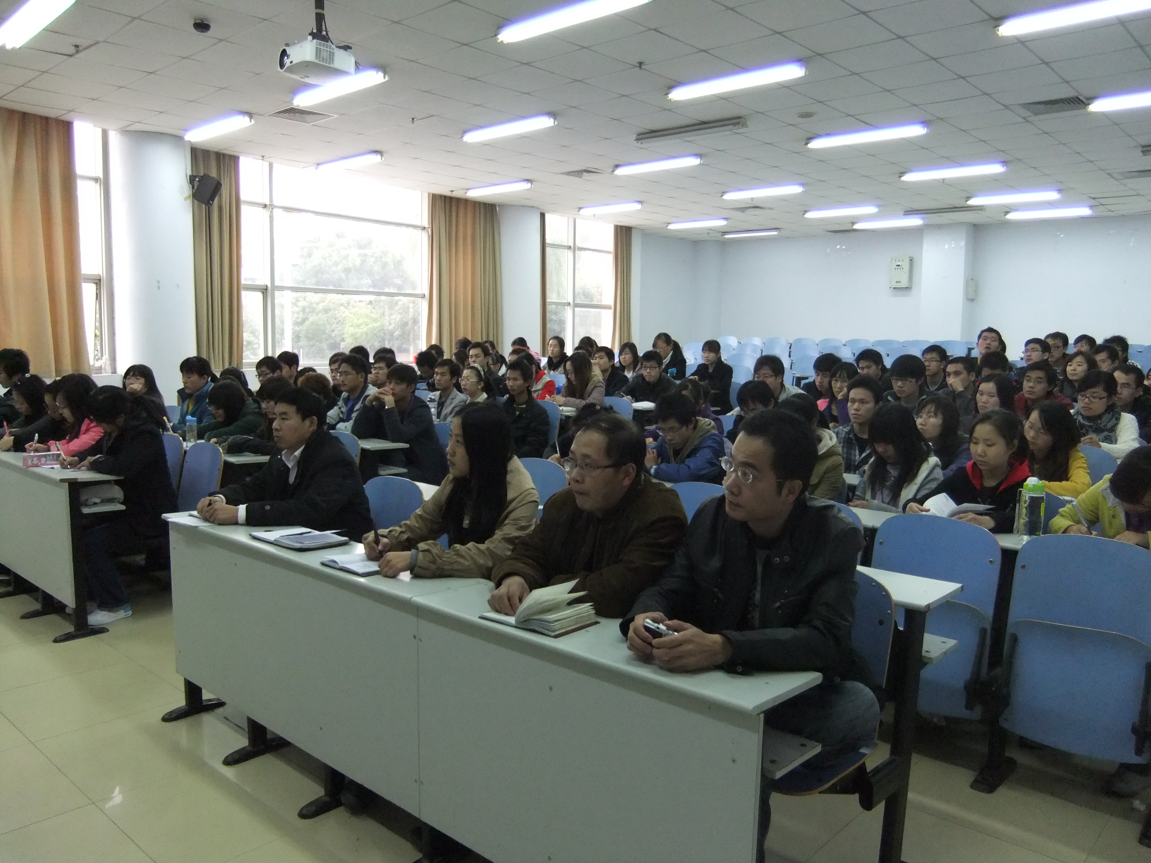 培训班第一讲主讲人闫铨钊书记就主题为“学生干部应具备的素质和能力的培养与塑造”对学生干部进行教育培训。闫书记以其深厚的理论水平,结合多年的工作心得,详细诠释了以下几个方面的内容:(1)什么是素质及学生干部应具备的素质;(2)学生干部要以学为主,兼学多样;(3)学生干部应该有奉献精神;(4)学生干部应该从哪些方面提高素质,进行能力塑造?闫书记准备充分,引经据典,以深厚的文学功底阐述了学生干部应具备的素质、涵养、奉献精神、宽广的胸怀、远大的理想等品质和精神。第二讲主讲人吴占超副书记围绕 “学生干部如何关注弱势群体、如何组织学生活动及处理突发事件”的主题,紧密结合学生工作中关注弱势群体、困难生认定及引导学生理性爱国等难点进行讲解,深入浅出。教育学生干部要脚踏实地,深入学生基层,了解同学们的思想及生活状况,把握与同学沟通的技巧,要在突发事件面前立场正确,在日常生活中服务同学,维护校园的稳定。