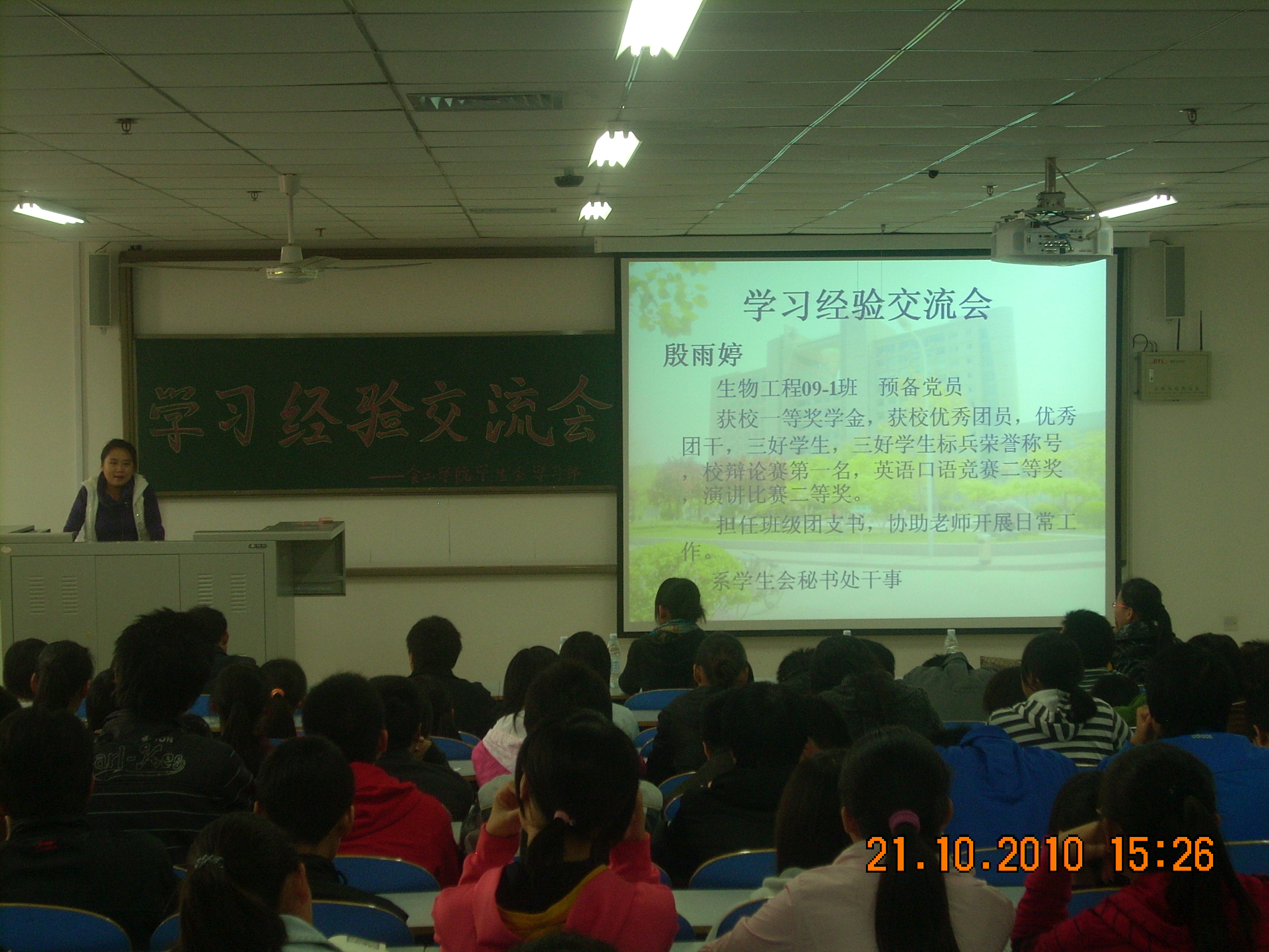 食品与生物工程学院2010级新生大学生涯规划活动之新老生学习经验交流会于10月21日下午在科学校区电教楼206、307教室顺利举行。