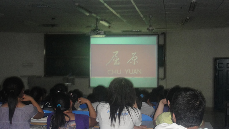 我院2009级同学共同观看了反应爱国诗人屈原生平事迹的同名影片《屈原》。电影通过主人翁屈原曲折、坎坷的人生经历,反应了他爱国爱民的高尚情怀。现场的同学们无不被跌宕起伏的故事情节吸引,同时也被屈原的精神所感动。