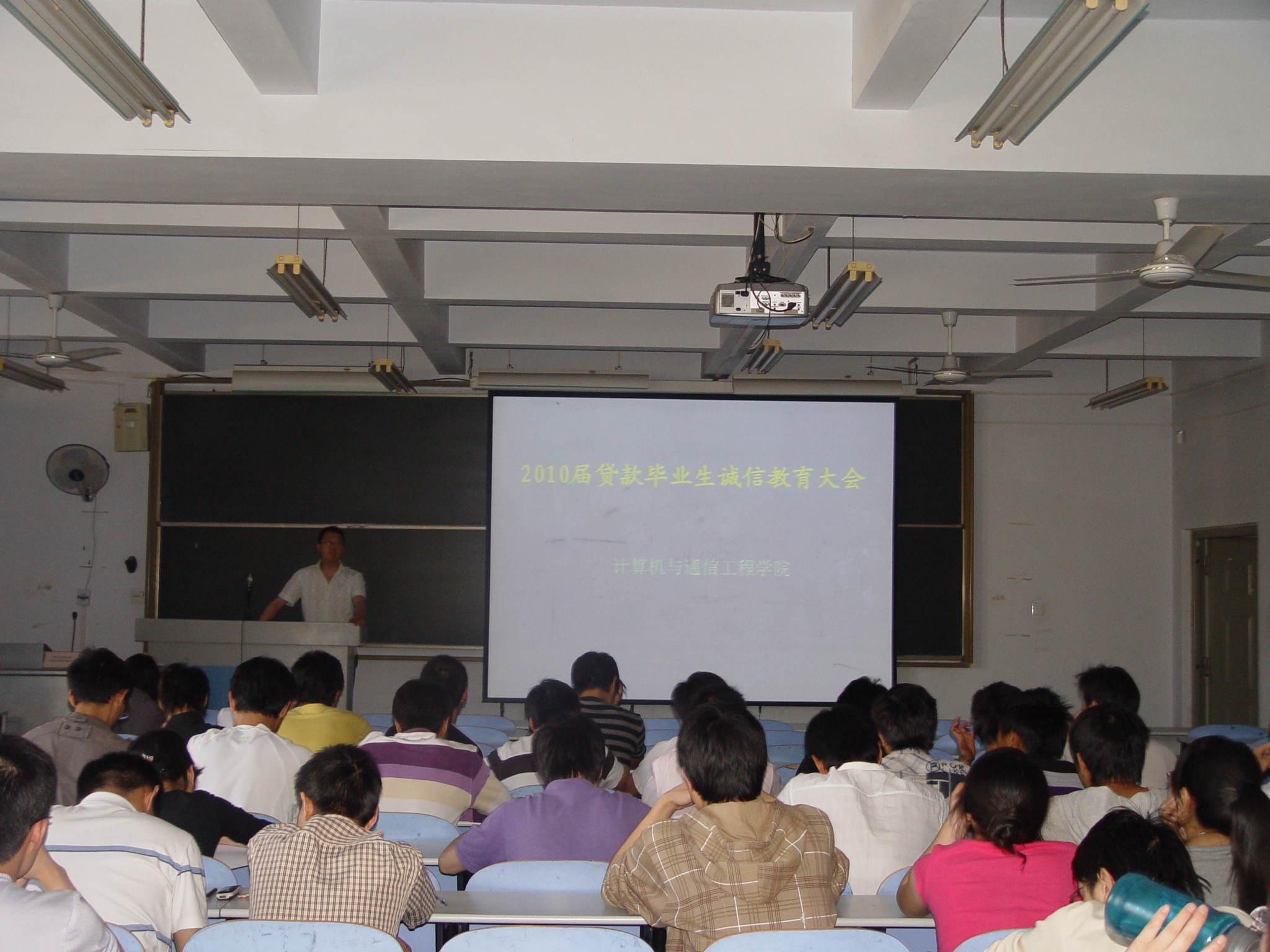 5月11日下午,计算机与通信工程学院国家助学贷款毕业生诚信教育大会在教三楼308召开。全体贷款毕业生参加了此次会议,会议由学工办司丽娜老师主持。
