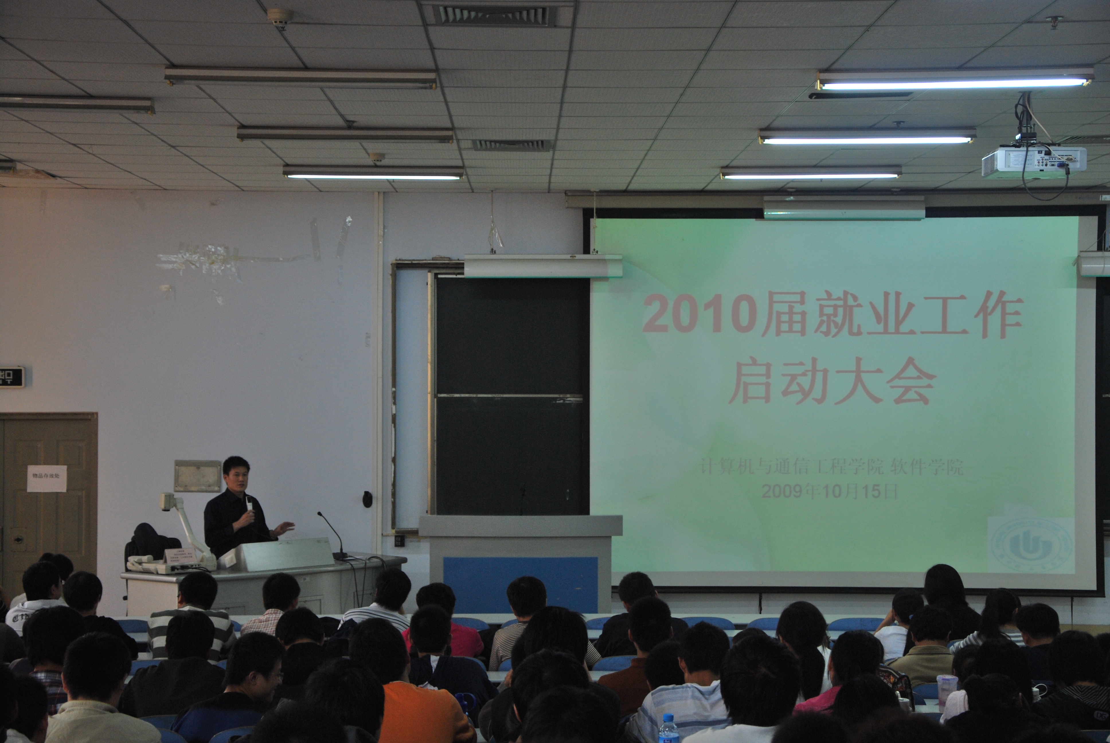 为了更好地做好就业工作,计算机与通信工程学院、软件学院通过多种形式启动2010届毕业生就业工作。10月15日下午4:30,计算机学院、软件学院在教三楼302召开全体毕业生大会,学院党总支副书记卢中宁老师向广大毕业生做主题报告,全体毕业班辅导员和毕业生参加会议。