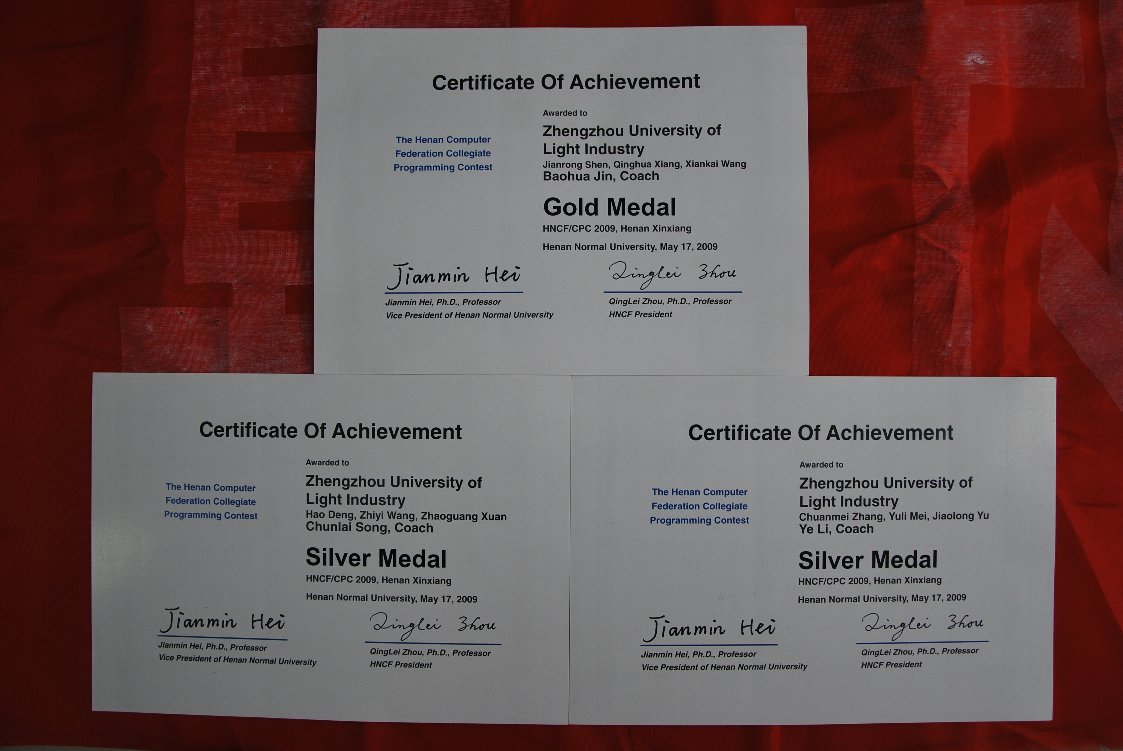 本届河南省大学生程序设计竞赛旨在提高省内高校大学生的创新能力,提升高校计算机专业的教育水平。我校学生取得的喜人成绩充分显示了我校计算机专业的教育水平,也展示出了我校计算机专业学生的实力和风采。