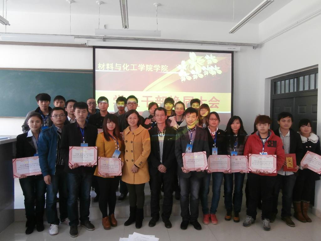 11月11日下午,材料与化学工程学院在化工楼218举行2012年学生干部换届大会。出席本次大会的有学院分团委副书记万慧杰老师,以及学生会、学生分团委、年级团总支全体成员和学生社团主要学生干部。