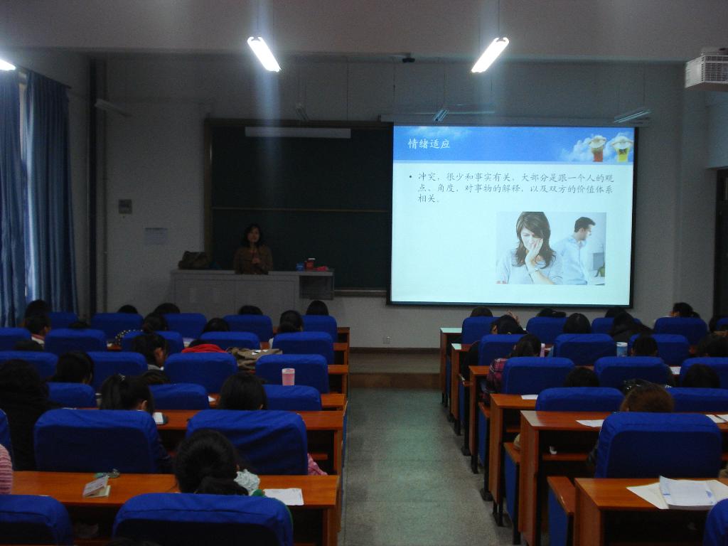 11月29日下午,我院邀请学校心理健康教育中心主任郑莺老师为学院女生做了主题为“我健康、我美丽”的心理健康教育讲座。郑老师从新生普遍关注的心理问题展开教育,首先分析了大学女生的心理特点,然后着重阐述了人际交往可能遇到的问题及其应对、大学女生修养及不良情绪处理、形成正确的恋爱观等。