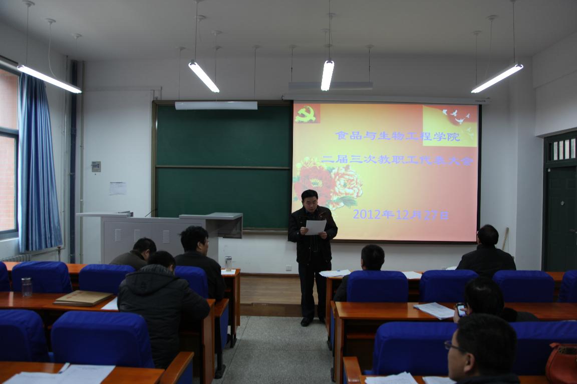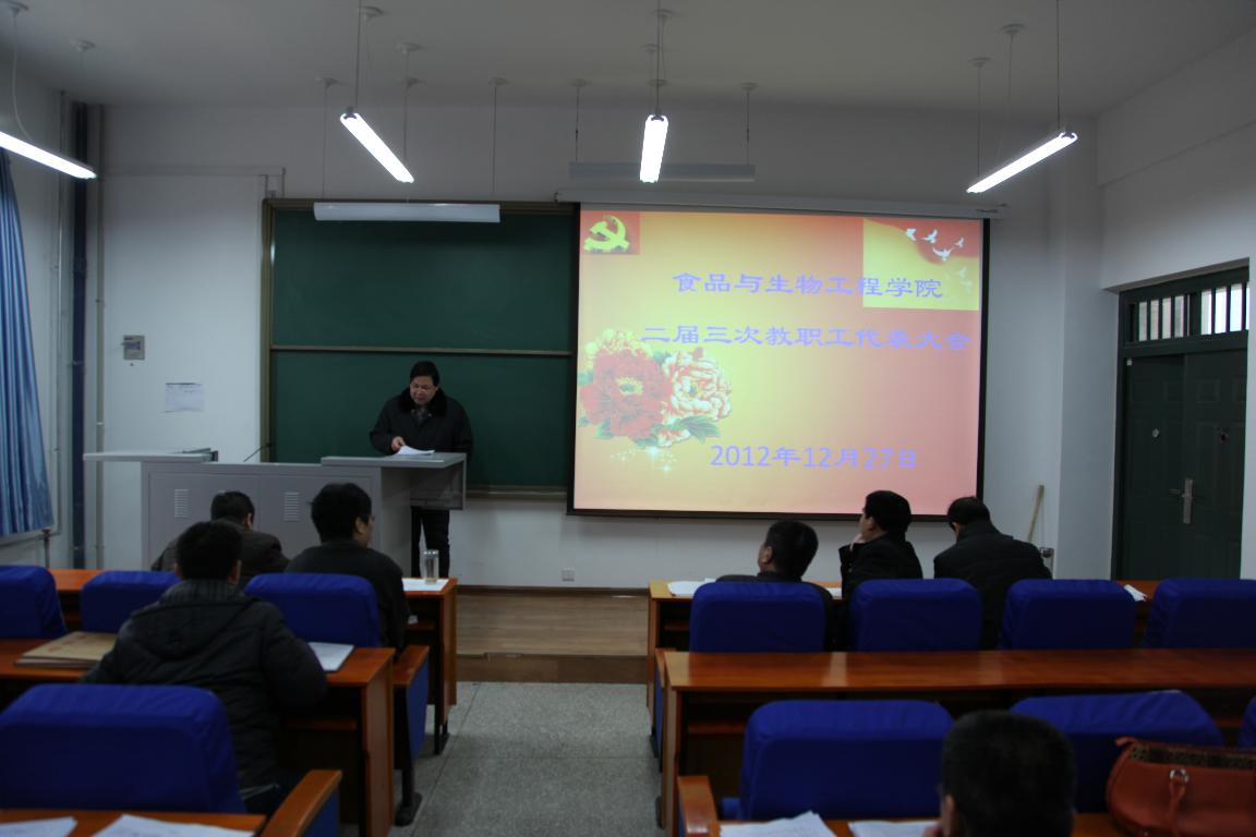 12月27日下午,食品与生物工程学院二届三次教职工代表大会在科学校区食工楼209教室召开。大会由学院党总支闫铨钊书记主持。