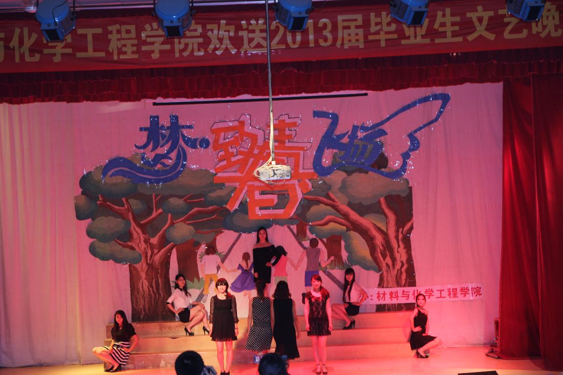 2013年5月25日晚上7点,材料与化学工程学院在科学校区电教楼208举办“致青春·梦飞扬”欢送2013届毕业生晚会。学院领导、辅导员、部分专业老师以及2013届毕业生等500余名同学观看了演出。
