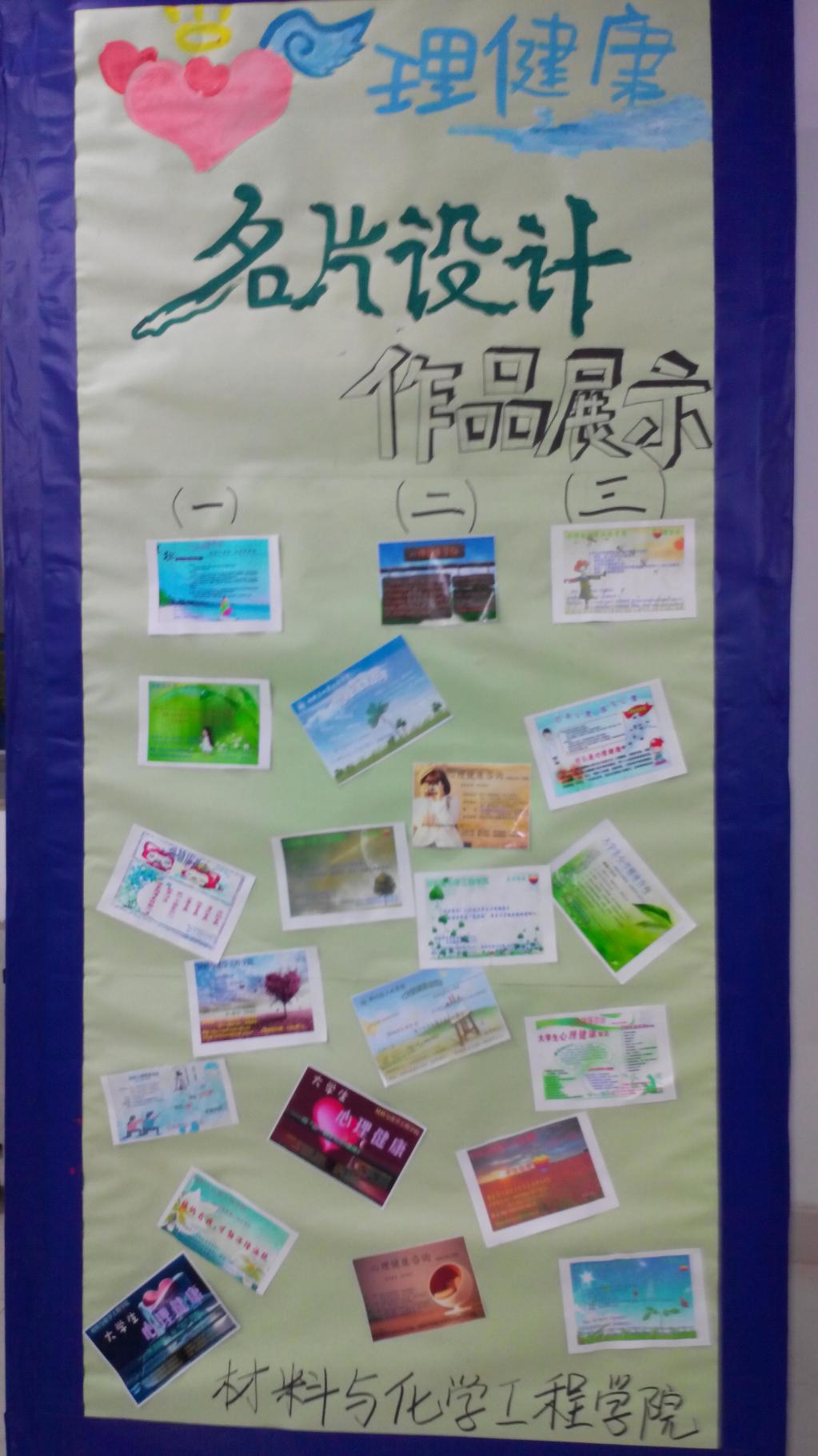 材料与化学工程学院根据《关于开展全省高校心理健康教育宣传周活动的通知》(教思政[2013]90号)文件精神,在十月份举办了“大学生心理健康名片设计大赛”活动。整个活动历时一个月,旨在引导学生建立相亲相爱、互帮互助的和谐人际关系,并进一步提高我院大学生的心理健康水平,普及心理健康知识,展现当代大学生奋发拼搏、积极向上的精神风貌。