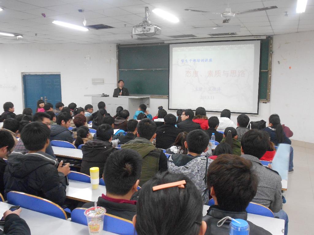 会上,宋书记为全体学生干部作了“态度、素质与思路”专题讲座。他结合自身学生工作的经历,从对大学学生干部的认识、学生干部的基本素质要求、处理好学生工作中的几种关系、学生干部常用的工作方法、开展工作的思路、学生干部应有的表达艺术等六个方面展开阐述,勉励广大学生干部牢记“全心全意为同学服务”的使命,树立公仆意识、民主意识和创新意识,珍惜各种锻炼的平台和机会,外塑形象,内强素质,切实发挥信息源、参谋、堡垒、桥梁以及模范带头作用,充分挖掘岗位工作潜力,在锻炼中增长才敢。宋书记坦诚朴实的讲话使广大学生干部深受鼓舞和启发。大家纷纷表示不仅要干好工作,更要在遵守校规校纪、提高学习成绩等方面做好表率,发挥模范带头作用。