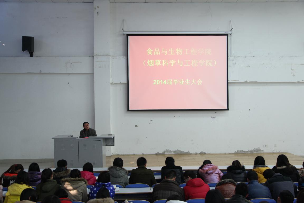 2014年2月19日上午,食品与生物工程学院在科学校区三教楼408召开2014届全体毕业生大会,党总支郭伍常副书记、毕业班辅导员、负责就业和贷款工作的老师及全体2014届毕业生参加了此次大会。