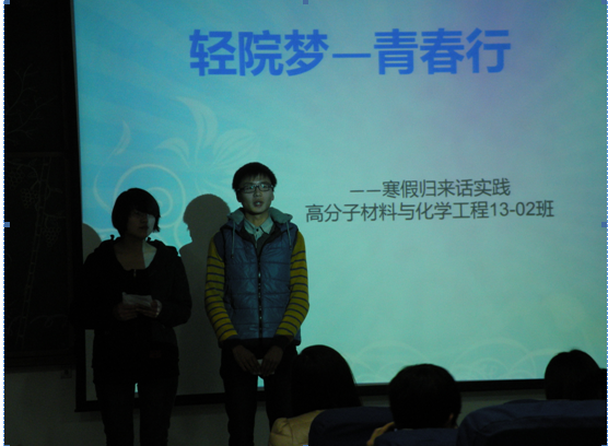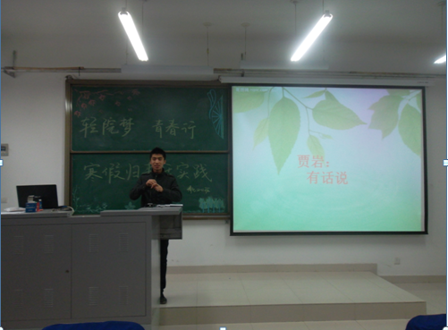 各班级同学积极响应,精心策划,以座谈、PPT展示、情景演绎等形式,分享寒假实践收获和感悟,取得了良好的活动效果。活动中,同学们畅所欲言、互相交流,内容涉及十八届三中全会精神宣讲、科普知识宣传、环保意识进社区等,采用集中宣讲、问卷调查、人物访谈等形式。同学们普遍认为通过参加寒假社会实践活动,不仅个人组织、协调、科技创新等各方面素质得到了锻炼和提高,同时,自己也切身体会到了应该珍惜现在的学习和生活,从小事做起,多学知识,不断完善自我,掌握更多服务社会的本领,将来为社会作出更大的贡献。