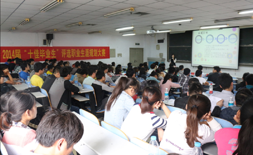 下午,我校2014届“十佳毕业生”评选之演讲比赛和职业规划大赛在东风校区教三楼103和105教室同时拉开帷幕,本次活动由校毕业生就业指导中心主办,外国语学院和数学与信息科学学院承办,各院(系)党总支副书记及校毕业生就业指导中心全体成员参加了评选活动并担任评委,600多名学生观看了比赛。