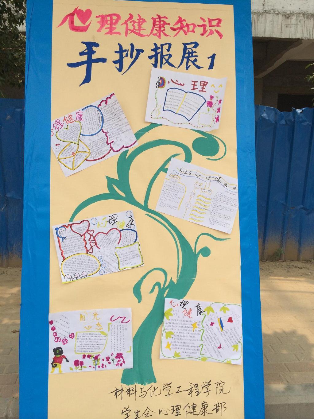 为了普及心理健康知识,在广大学生中营造关注心理健康、懂得心理健康、重视心理健康的氛围。近日,材料与化学工程学院举行了以“心理健康”为主题的手抄报评选活动。全院二十四个班级认真刊出了紧扣主题、设计新颖、图文并茂、美观大方的手抄报。既展现了学生对心理健康的关注程度,同时也宣传了心理健康知识,丰富了校园文化生活。 此次活动是我院组织的“5.25”心理健康月宣传活动之一,历经两个星期,目的是为了让同学们在出手抄报的同时,学到更多更好的心理健康知识。