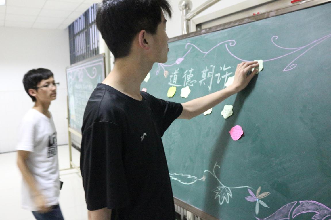 讲堂活动上,大家在《好人好梦》的歌声中进行了关于道德的交流讨论,写下了参与此次活动的感想,并互赠写有经典道德箴言的书签以共勉,并在离场时亲手贴到了宣传板上。