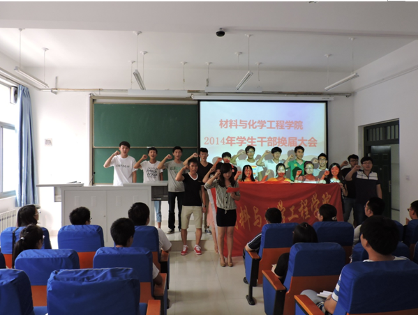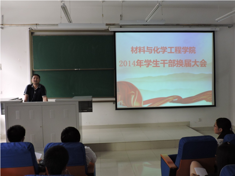 2014年6月17日下午,材料与化学工程学院在化工楼218召开2014年学生干部换届大会。学院党总支副书记宋德涛老师,分团委副书记万慧杰老师出席了大会。学院分团委、学生会全体成员以及各班级主要学生干部参加了会议。第三十五届学生会秘书长李一甲同学主持大会。