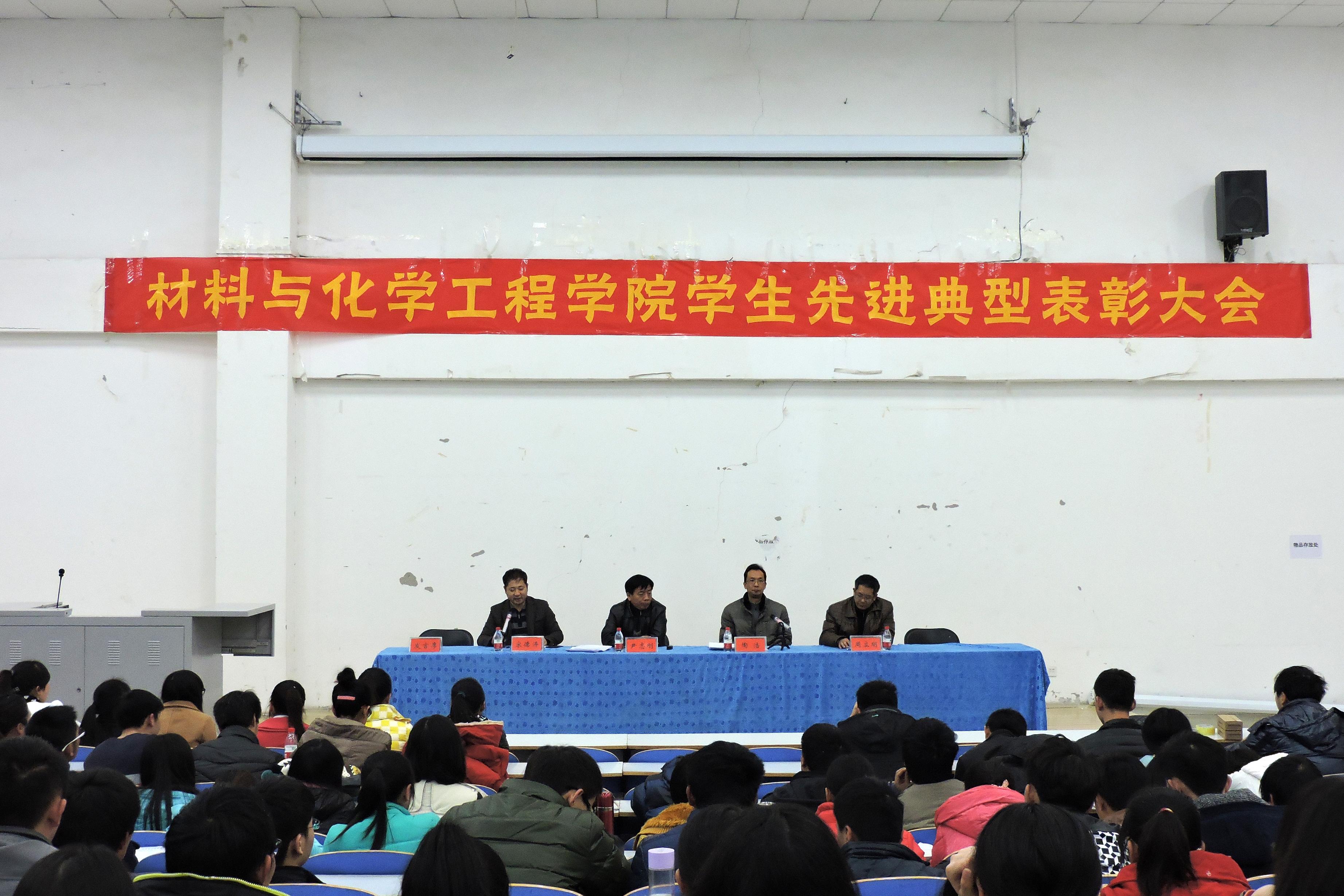 2014年12月25日下午,材料与化学工程学院2014年学生先进典型表彰大会在科学校区三教楼408教室隆重举行。学院党政领导出席大会。全体辅导员、获奖学生代表及2014级全体学生参加了会议,会议由学院党总支宋德涛副书记主持。