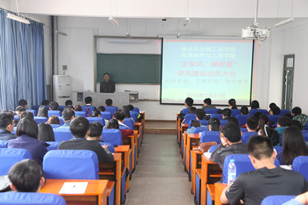 根据学校党委学工部(处)《关于开展2015年“正学风、聚能量”学风建设活动的通知》的部署和要求,为进一步推动我院优良学风建设,巩固我院2014年“正学风、聚能量”学风建设活动的成效,并学习、贯彻我院在本次学风建设工作实施方案中的相关工作,营造更加浓厚的学习氛围,3月31日中午,食品与生物工程学院党总支郭伍常副书记主持召开动员大会,对学院学风建设专项活动进行动员和布置。学院部分专兼职辅导员、2012级、2013级、2014级三个本科年级和2013级、2014级两个硕士研究生年级学生干部参加了会议。