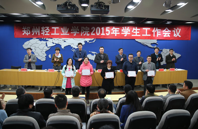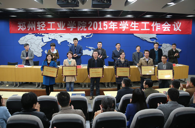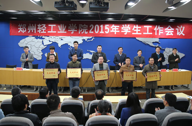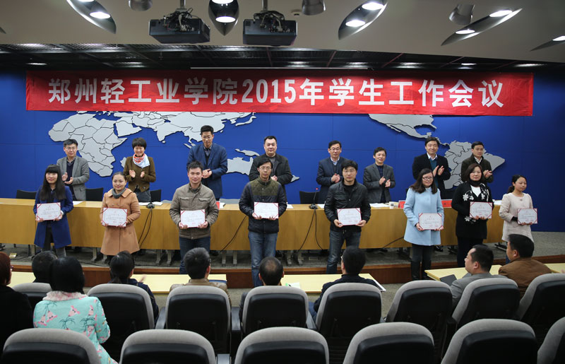 艺术设计学院等6个院(系)被授予学校2014年学生工作创新奖。材料与化学工程学院等5个院(系)和王静等14名同志分别被授予2014年学生资助工作先进单位和先进个人。食品与生物工程(烟草科学与工程学院)党总支副书记郭伍常、计算机与通信工程(电子信息工程学院)党总支副书记葛勋分别做了典型发言。